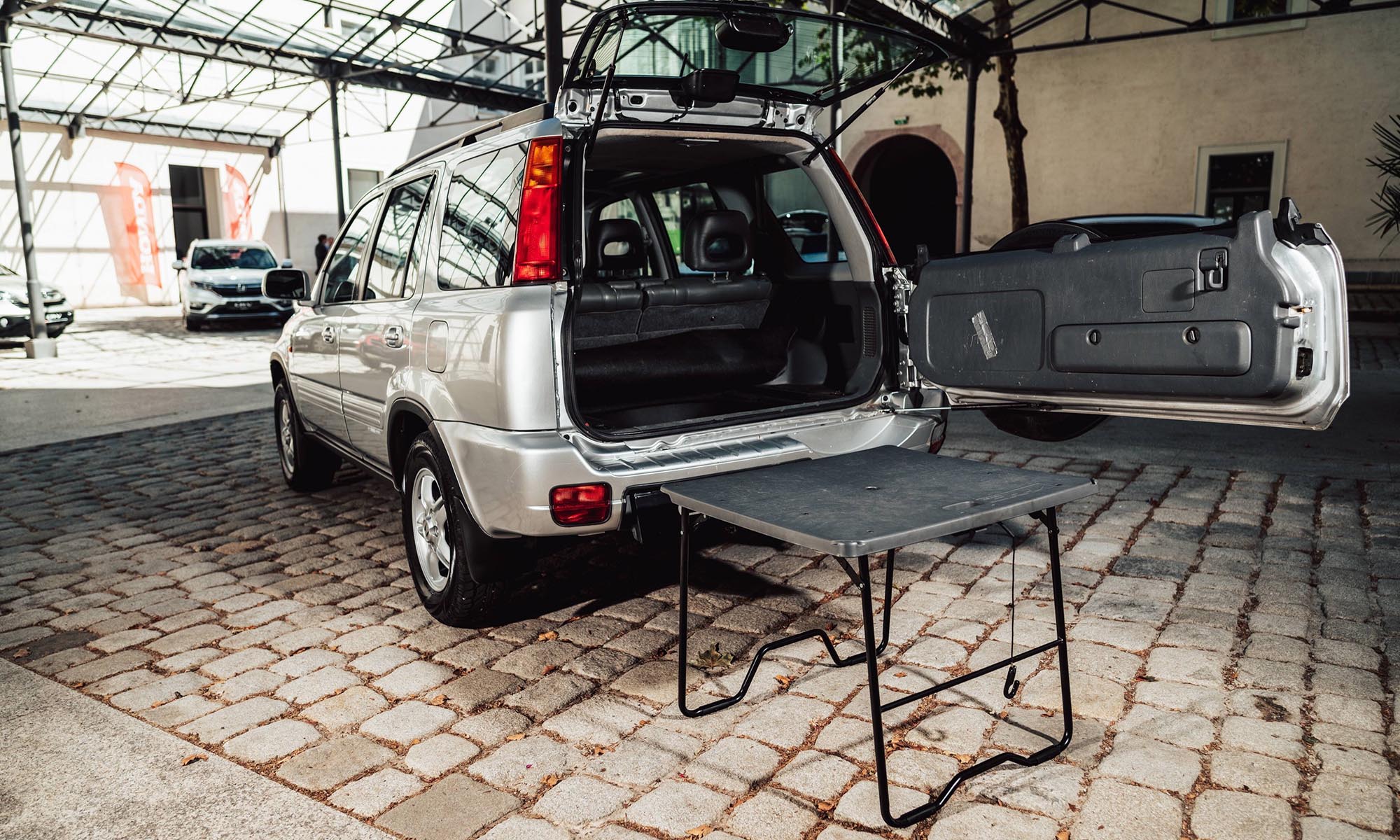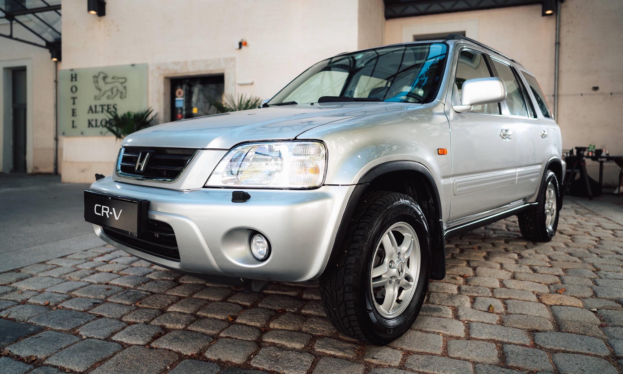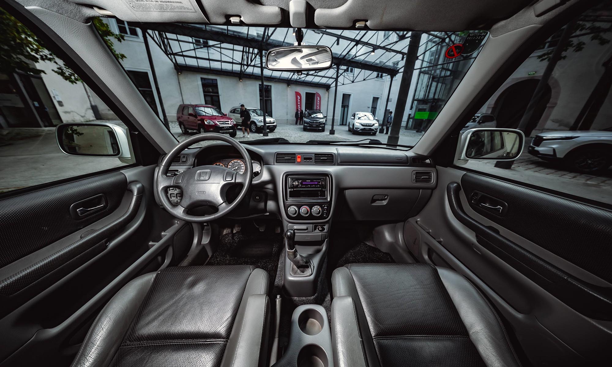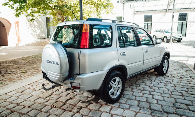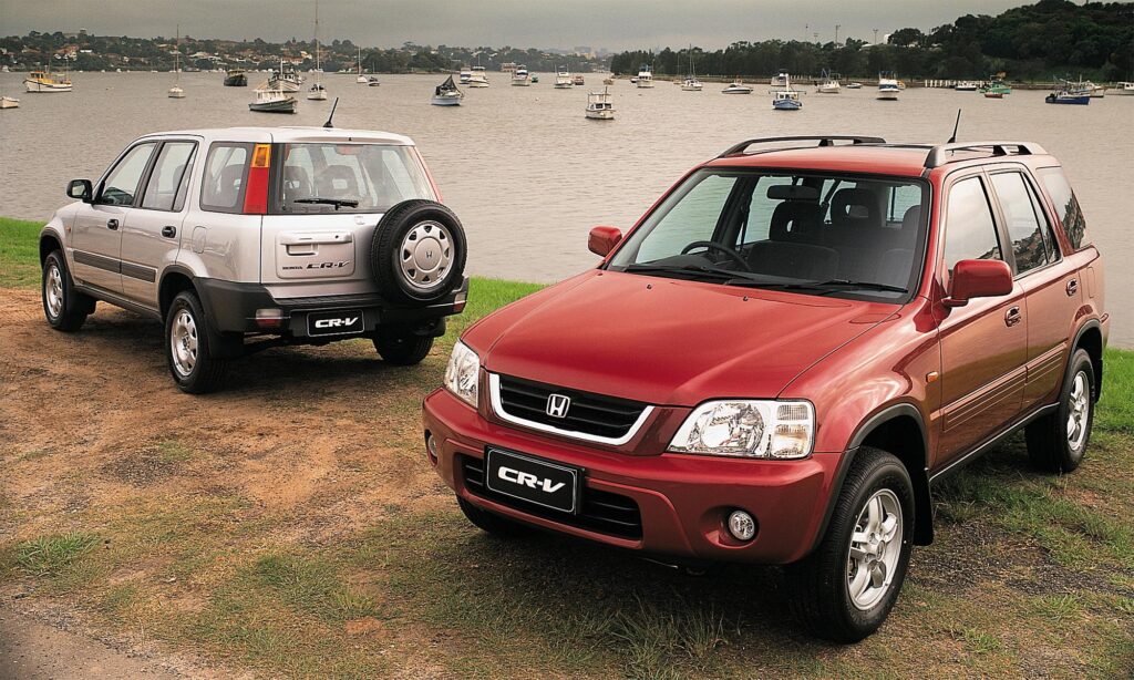 Az első CR-V szögletes, de szerethető formát kapott, belül pedig már ekkor olyan trükkökkel szolgált, amik a japán autók erősségei: rengeteg pakolóhely, lehajtható asztalka, és ami mindent vitt – a csomagtérajtóra szerelt pótkerék. Ja, és külön feláras extraként rendelhettél beépített zuhanyt. Ezzel a CR-V egyszerre lett kalandor és családbarát.