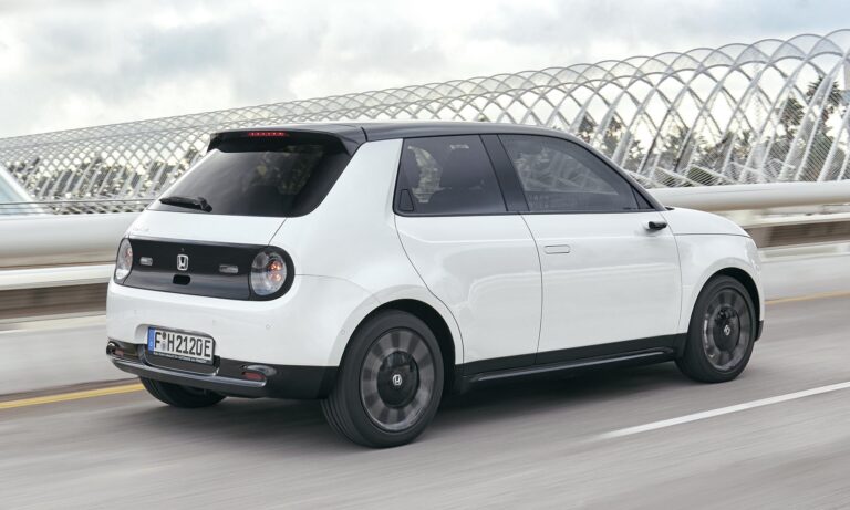 A retró-futurisztikus stílusú, hátsókerék-meghajtású Honda e egy olyan kisautó, amit egyszerűen nem lehet nem szeretni. Kivéve akkor, amikor tölteni kell, vagy messzire akarsz indulni vele. Az akkumulátora ugyanis nagyon kicsi, 35,5 kilowattórás, de abból csak 28,5-et lehet hasznosítani, innen a 220 kilométeres hatótáv. Az Advance változata pedig nemcsak erősebb, 154 lóerős motort, de nagyobb kerekeket is kapott, amivel még az elméleti hatótáv is 200 kilométerre csökkent.