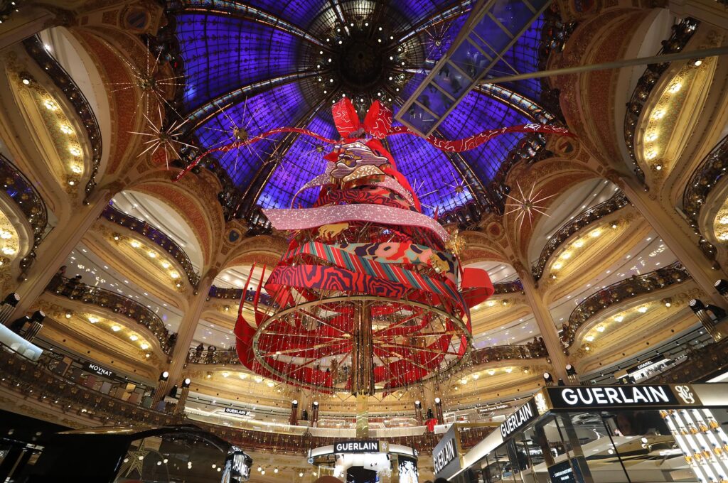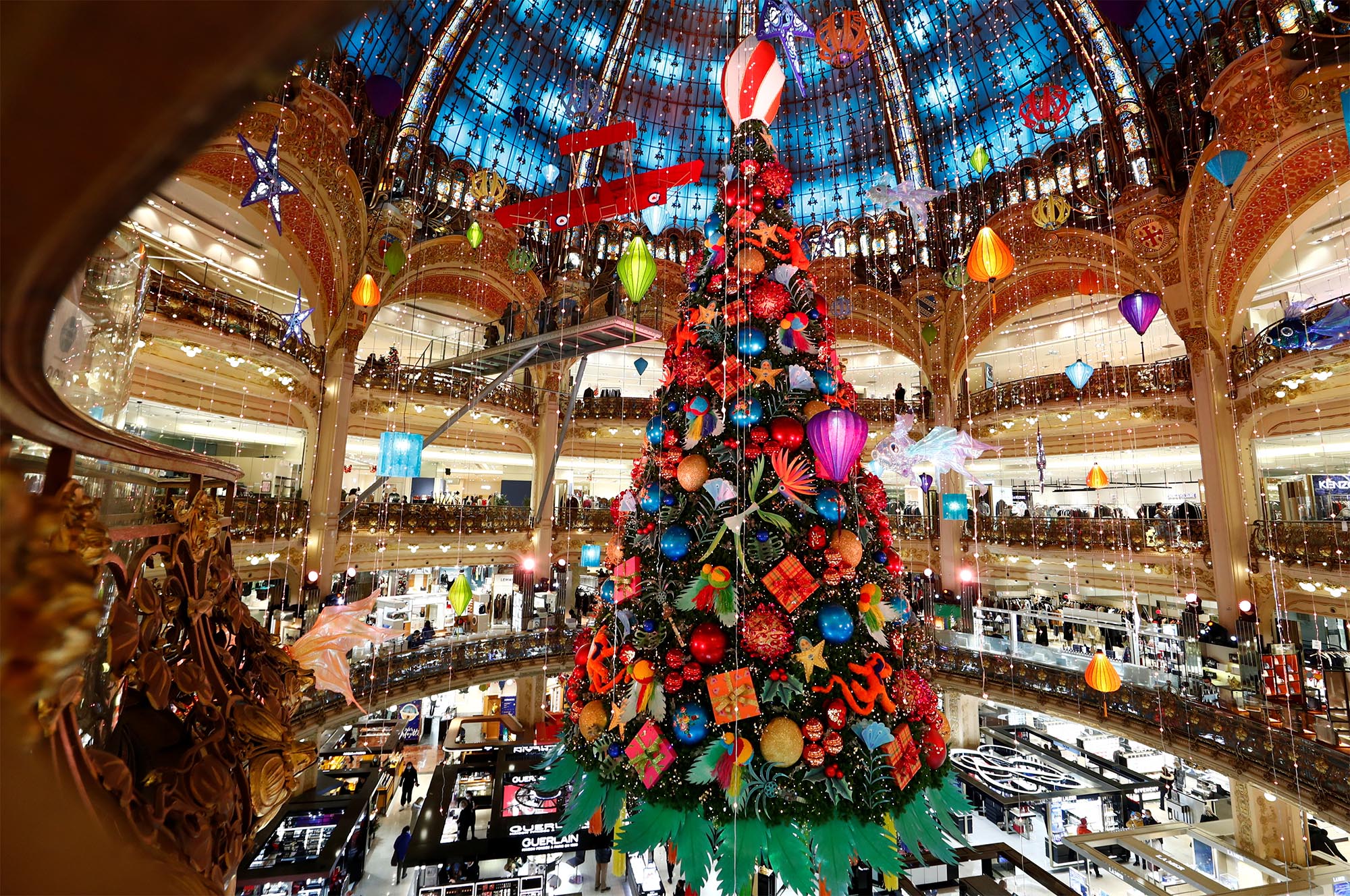 A párizsi luxusáruházban minden évben egy új, fantáziadús témát álmodnak meg, és az igazi látványosság nem is a kirakatokban, hanem az épület belsejében vár. A híres Art Nouveau kupola alatt minden évben egy gigantikus, gyakran a levegőben lebegő karácsonyfát állítanak fel. A fa itt nem csupán dísz, hanem interaktív installáció. Volt már, hogy fejjel lefelé lógott, máskor papírból készült, vagy éppen űrkorszaki dizájnt kapott. Az élményt óránként zenés fényshow teszi teljessé, miközben a látogatók az üveghídon sétálva csodálhatják meg a részleteket.