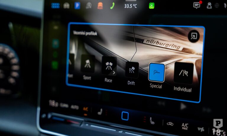 333 lóerő, összkerékmeghajtás, drift mód és a jellegzetes lapizkék metálfényezés, ami csak ehhez a modellhez kérhető