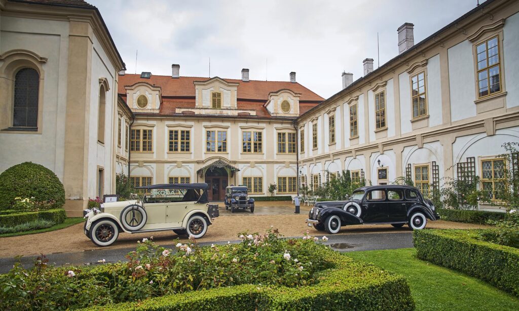 Mladá Boleslav, a Škoda mai központja egy óra autózásra van Prágától, és a közelében találod a loučeň-i kastélyt, ami elég stílusos helyszín volt ahhoz, hogy felfedezzük a Škoda múltját. Nemcsak azért, mert a romantikus barokk kastély angolparkjában jól mutattak a veterán autók, hanem azért is, mert a kastélyt a második világháborúig birtokló Thurn-und-Taxis családnak köze is volt az autógyártóhoz. A környék nagybirtokosaiként a cukorgyártásból szerezték a vagyonukat, munkát adva a környék lakóinak, és amikor haladni kellett a korral, akkor befektetőként csatlakoztak a közeli autógyártóhoz, ezzel is formálva annak jövőjét.