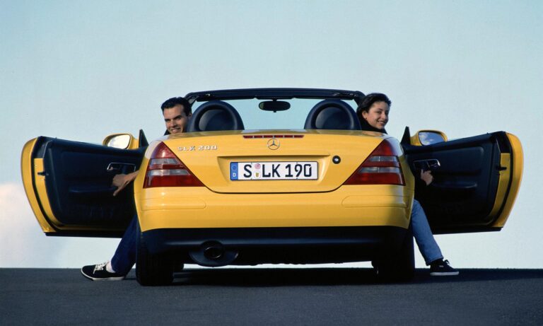 A kilencvenes évek derekán, ha igazán menő autót akartál, akkor egy roadstert vehettél, amiből még válogatni is lehetett. A Mazda MX-5 nyomdokaiba lépett a BMW Z3, majd a Mercedes-Benz is az SLK első generációjával, ami éppen 1996-ban jelent meg. A különlegessége a másik kettőhöz képest az összehajtható fémtetője volt, ami 25 másodperc alatt tüntethető el az autó hátuljában. Az SLK első generációja nagy siker lett, 2004-ig több mint 311 ezer példányt adtak el belőle.