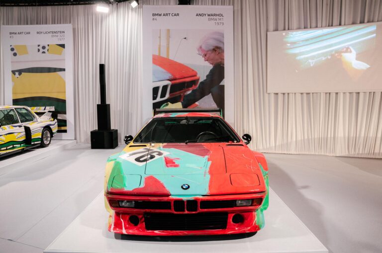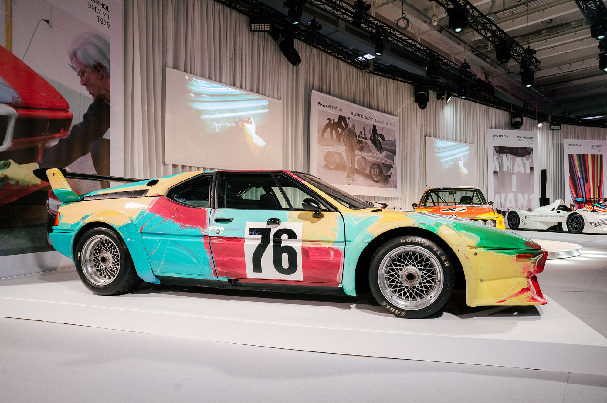 Talán a legismertebb Art Car mind közül Andy Warhol alkotása, aki 1979-ben radikálisan szakított az elődei módszerével. Míg korábban a művészek maketten dolgoztak, és szakemberek vitték fel a tervet az autóra, Warhol maga ragadott ecsetet, és mindössze 28 perc alatt, széles és dinamikus mozdulatokkal festette le a BMW M1-est. „Azt akartam, hogy a színek és kontúrok elmosódjanak, ahogy a sebességtől látszik a valóságban” – mondta a pop art pápája. Warhol olyan gyorsan végzett az autóval, hogy arra a BMW-nél sem voltak felkészülve, a meghívott tévéstáb le is késte az alkotás folyamatát. A 470 lóerős, 310 km/órára képes BMW M1 a pályán is maradandót alkotott: Hervé Poulainnel a volánnál összesítettben a hatodik, kategóriájában pedig a második helyen zárt. A Warhol kézjegyével ellátott autó a gyűjtemény legértékesebb darabja.