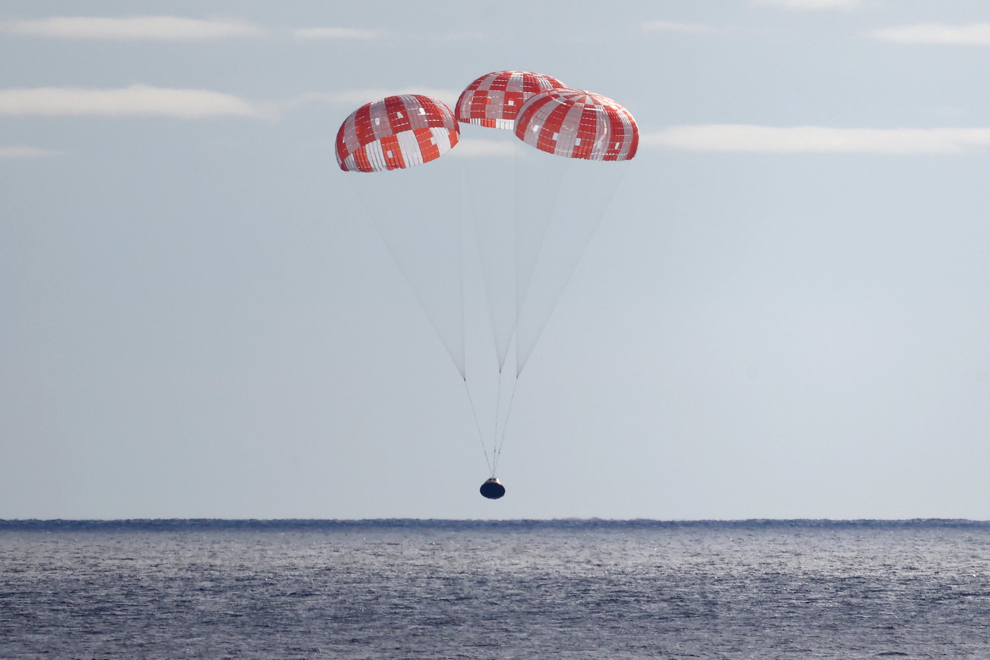 A hazaút végén a kapszula brutális, 40 200 km/órás sebességgel csapódik be a légkörbe, ami minden eddigi emberes repülést felülmúl. Ha a hőpajzs bírja a súrlódást, a négy asztronauta hivatalosan is a történelem leggyorsabb embereiként landol az óceánban.