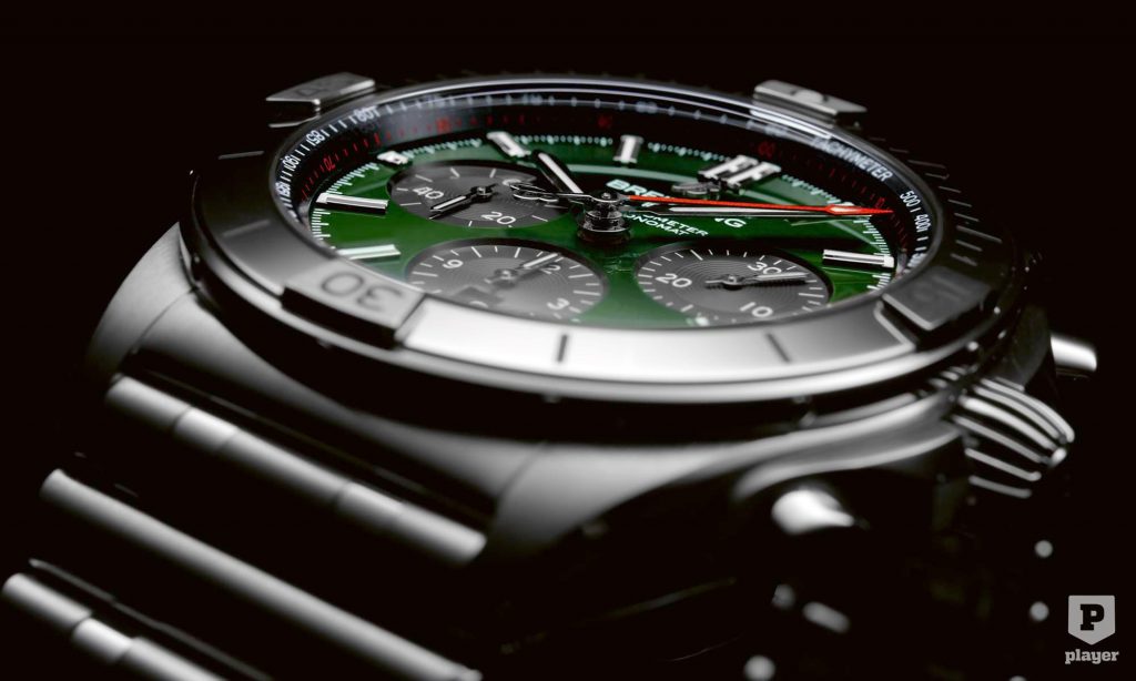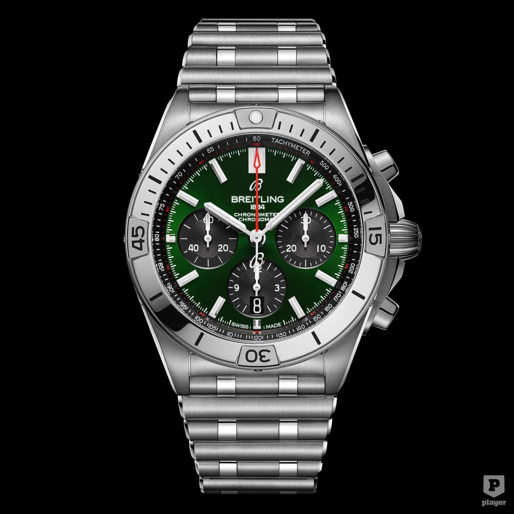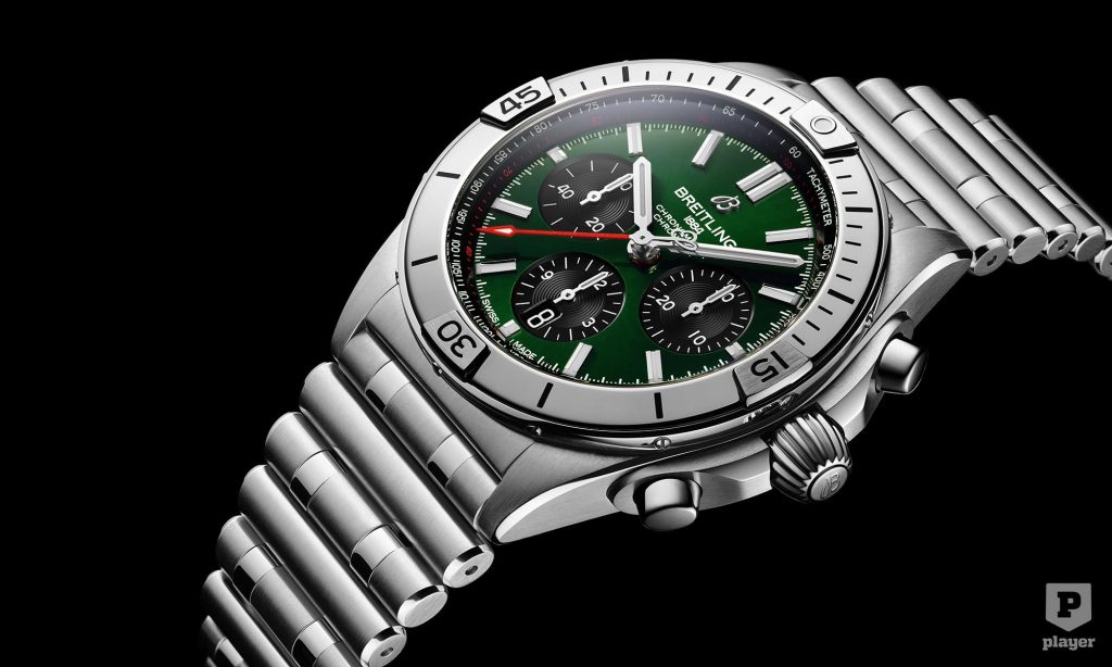 A Chronomat pedig nemcsak az autómárka zöldjében érhető el, hanem ezüst, réz, antracit vagy kék számlappal, 18 karátos rozéarany borítású házzal is rendelhető, ami még tovább növelheti az árát.