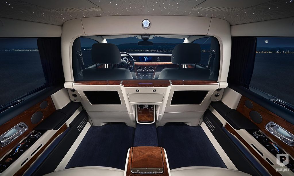 A Phantom egyébként is tele van érdekes opciókkal, és közülük is az egyik legdrágább a sofőrülést a hátsó tértől elválasztó, hangszigetelt és elsötétíthető üvegfal. Ha a hátul ülők mégis szeretnének kapcsolatba lépni a sofőrrel, akkor mikrofonnal üzenhetnek neki.