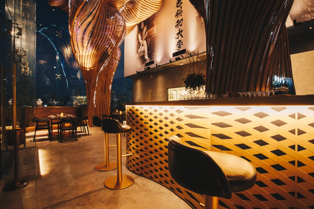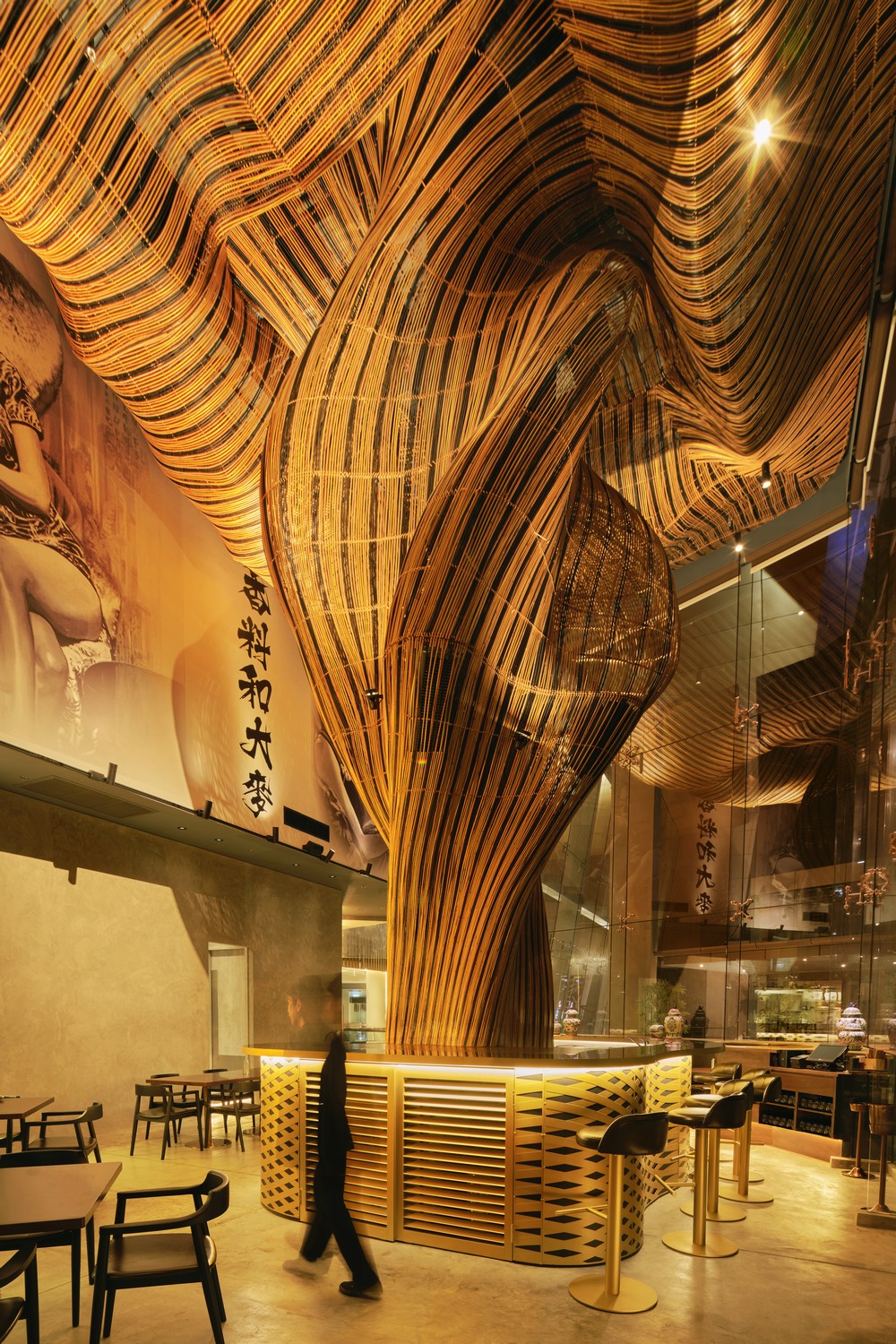 A Spice & Barley bangkoki bár belső terét szabadon áramló, szoborszerű rattanszerkezetek összetett hálója teszi különlegessé.