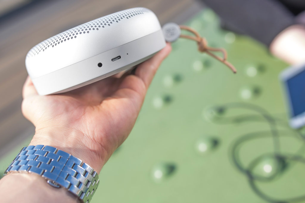 A BeoPlay A1-et vékony bőr akasztóval egészítették ki, hogy bárhol felakaszthasd, ha magaddal viszed. Ezt először annyira nem tartottam nagy fícsörnek – minek akasztanám fel, ha egyszer le is tehetem? De kiderült, hogy a dizájnerek jobban vágják ezt mint én és kiderült, hogy nagyon is sok értelme van az akasztónak: ha konyhában dolgozol és nem szeretnéd, hogy főzőcskézés közben útban legyen, csak fellógatod távolabb a kilincsre. Ha erdőben kirándultok, a sáros-bogaras-bármilyenes föld helyett egy faágra is felakaszthatod, hogy a természet ölén vagy urbán atmoszférában is körülöleljen a 360 fokos hangzás. Nem víz- és ütésálló, de ezektől felakasztva sokkal könnyebben megóvhatod, mintha leteszed (leszámítva, ha a zuhanyzódba akasztanád. Ne akaszd a zuhanyzódba).