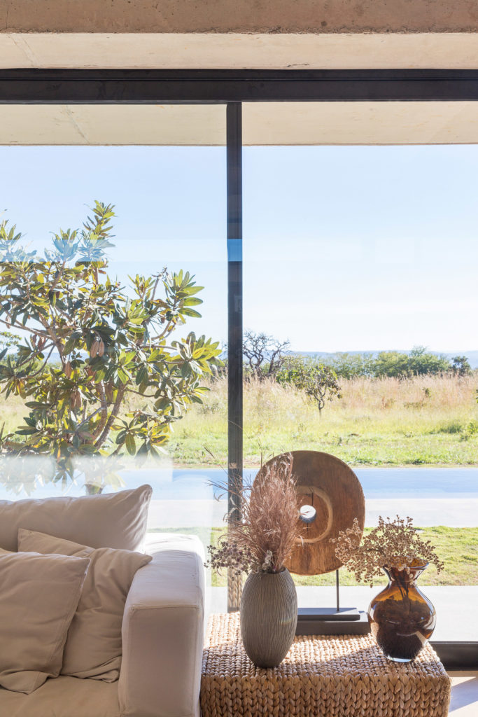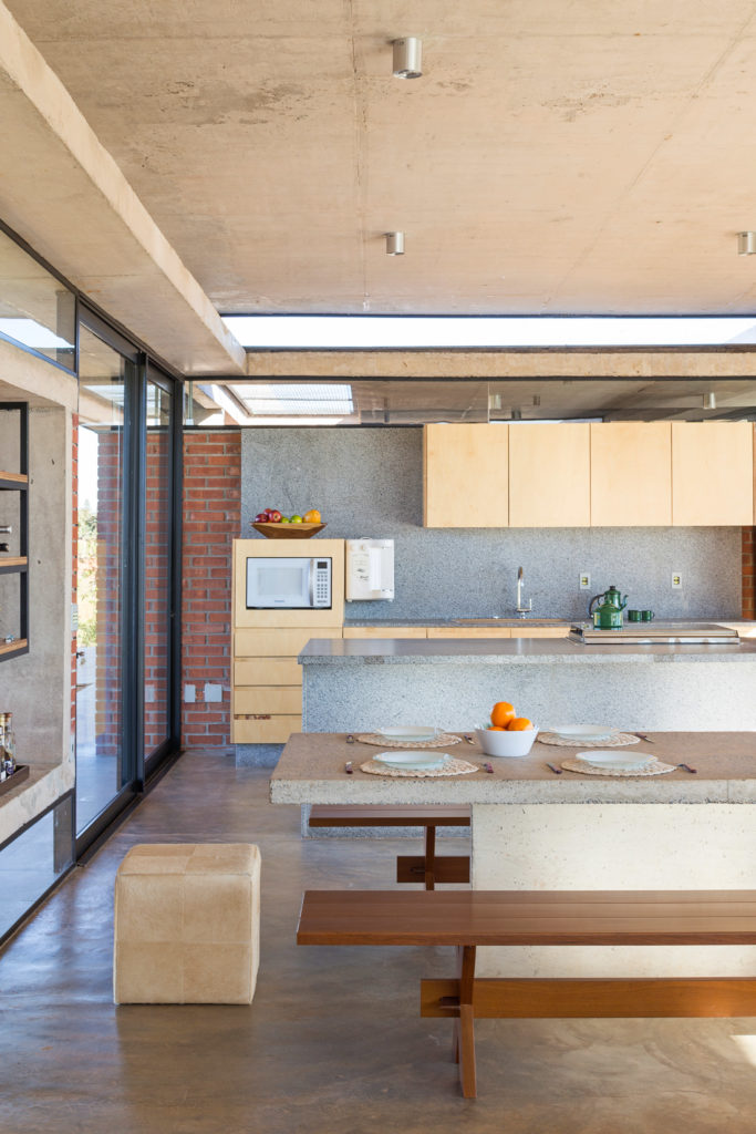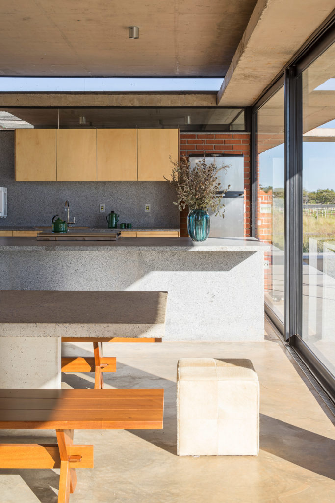 Betonbordák, üvegfalak, téglakeret; a Casa Vila borzasztóan kreatívan bánik az anyagokkal és a terekkel. Legtöbb helyen nyers az anyagválasztás, a ház mégis meglepően légies marad; hogy jó tájjellegű kifejezéssel éljünk, nem szarral gurigáztak a Bloco Arquitectos építészei.