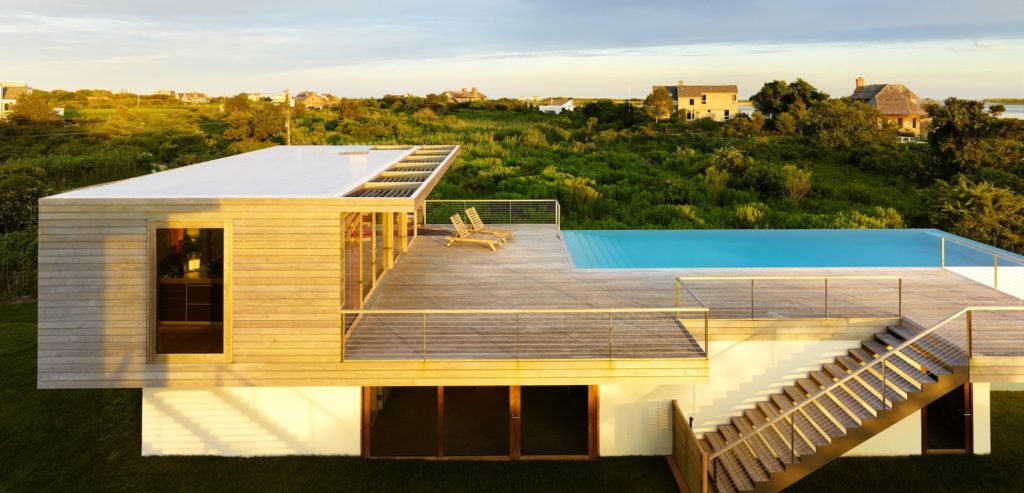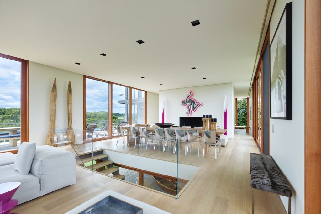 Sagaponack városában építették a természet nem belakott, lágy ölére ezt az elegáns és impozáns házat. A tereket úgy alakították ki, hogy simán lehet húsz fős konferenciákat is tartani, vagy épp elborozgatni a terasz egyik nyugágyán.