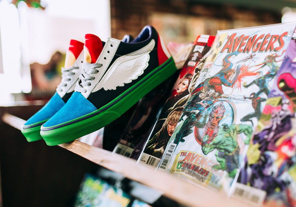 A keményvonalas képregényrajongók közül sokaknak meg fog dobbanni a szíve: lesz egy alapcsuka, amelyen a négy eredeti bosszúálló, Vasember, Thor, Amerika kapitány és Hulk lesz látható, ezen felül pedig Fekete Párduc kapott egykülön Sk8-Hi-t, Pókember pedig egy Slip-Ont kapott. Egészen pazarul festenek: