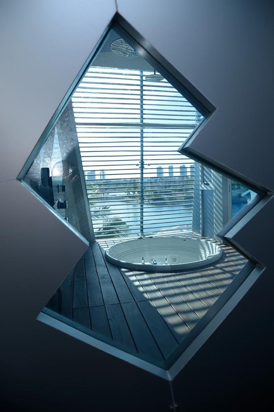 Ez a tengerparit otthon ugyanis a szögletes falaival, ferde elemeivel és absztrakt elemeivel ékes példája annak, miképpen ötvöződik egymással a 21. századi építészet a kortárs művészettel. A rezidencia csak úgy vibrál a színektől, néha inkább egy klub benyomását kelti. Így azt nem állítanánk, hogy ez a legcsaládiasabb, otthonosabb hely, amelyet el tudunk képzelni, de hogy tudnánk itt művelni ezt-azt, az is biztos.