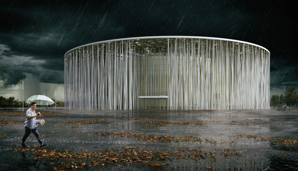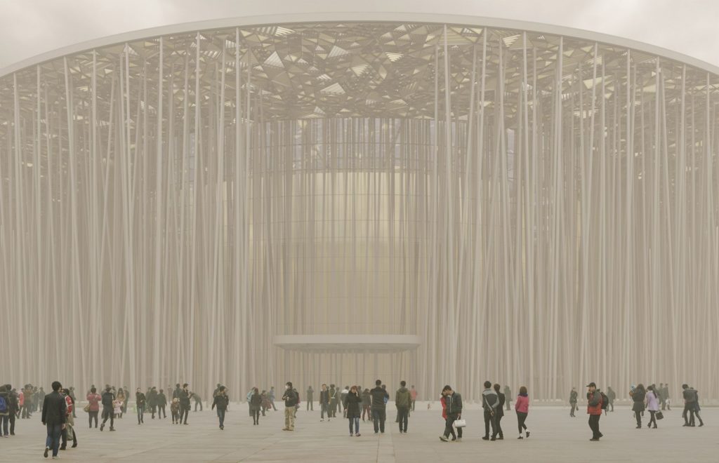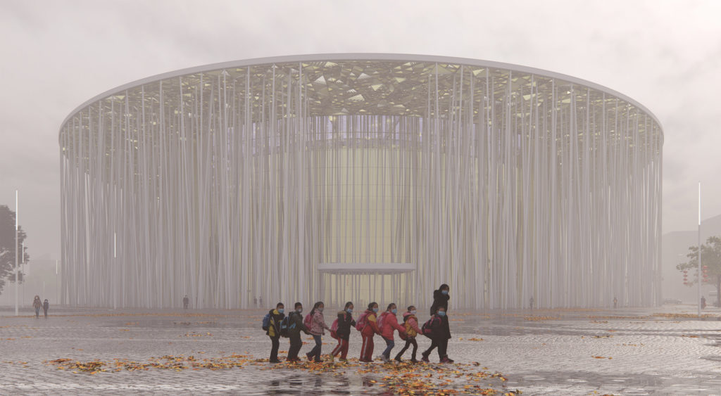 A kelet-kínai Vuhszhiban a londoni Steven Chilton Architects építőiroda egy olyan színházat tervezett, amely joggal juttathatja eszünkbe A függetlenség napját.