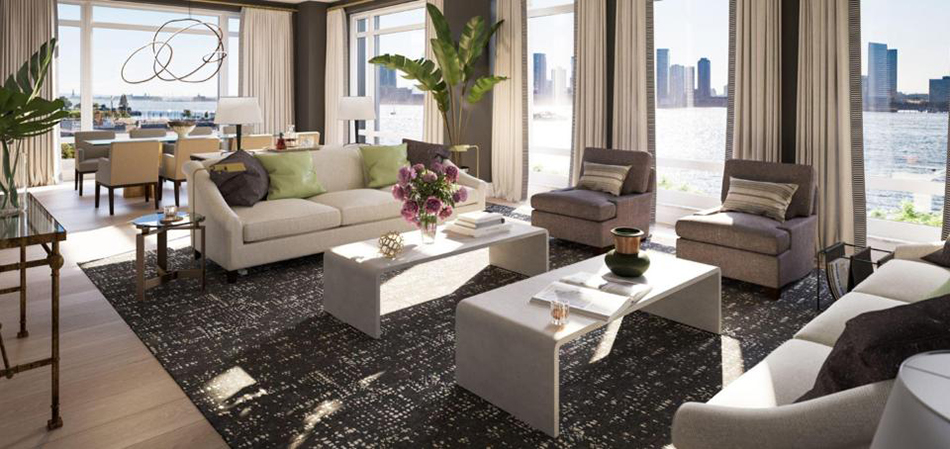 A Hudson-folyóra néző luxuslakás négy hálószobából, társalgóból, könyvtárból, squash pályából áll, plusz tartozik hozzá egy 25 méteres medence és egy 250 négyzetméteres erkély külső tér is.