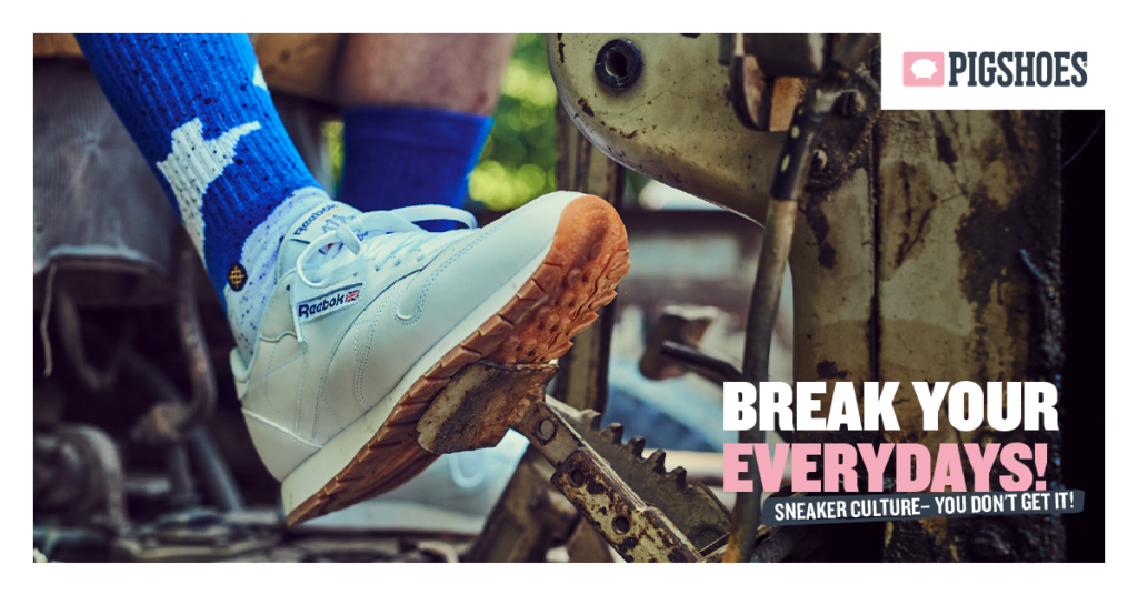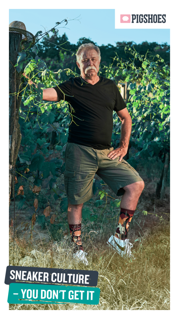 A PIG Shoes új kampányában az alapból nagyon városi sneakerek kapnak új megvilágítást: míg a menő sportlépőkre a legtöbben urbánus darabokként gondolunk, addig igazából bárki, bármilyen környezetben hordhat sneakert, ha kedve tartja. A bölcs tételt Józsi bácsi bizonyítja, aki bála mellett, trágyában vagy traktort vezetve hord Nike-t, Adidast vagy Reebokot.