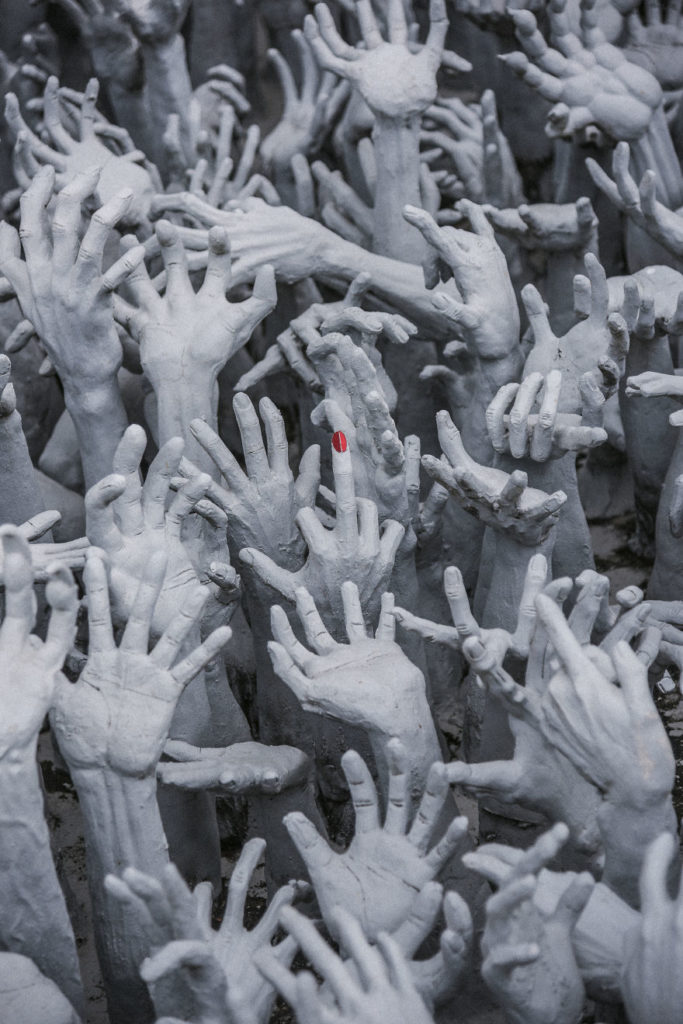 A fehér templom egy kis tó feletti hídon közelíthető meg, a híd előtt egy kör alakú tér van, melyből kezek nyúlnak ki. Ez a terület lényegében az emberi szenvedést ábrázolja.