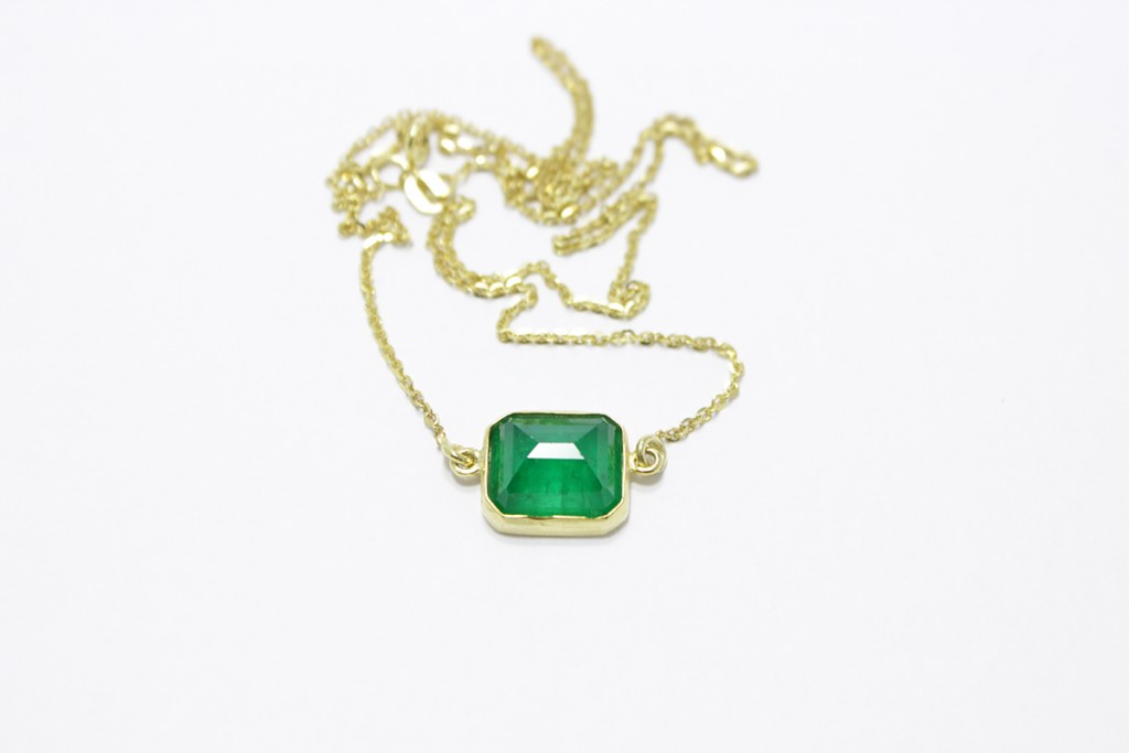 És végül egy zöld csoda: smaragd zárt foglalatban, sárga arany nyaklánc.