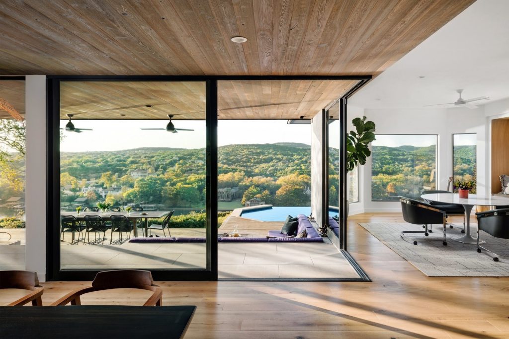 Az Austin-tó fölé emelkedik ez a nem mindennapi, modern otthon.