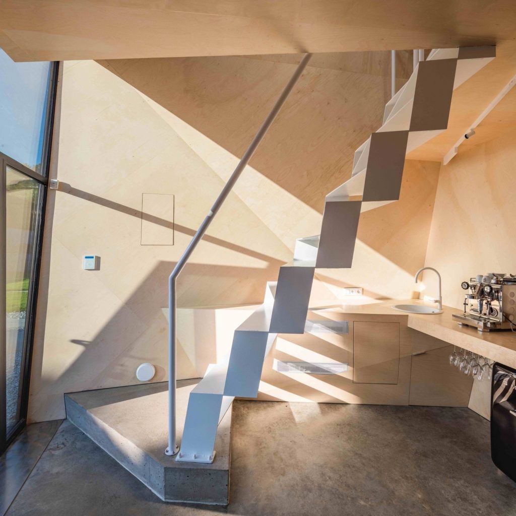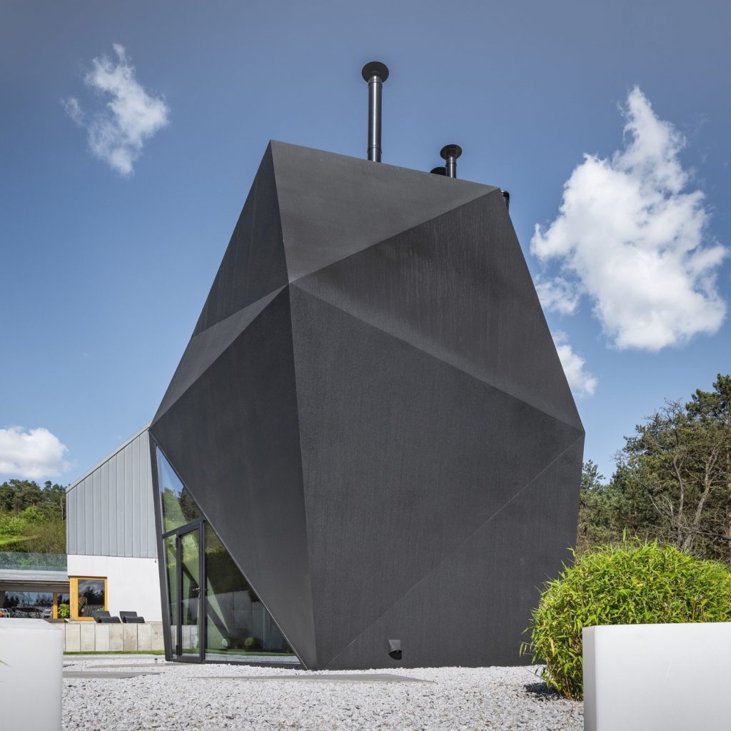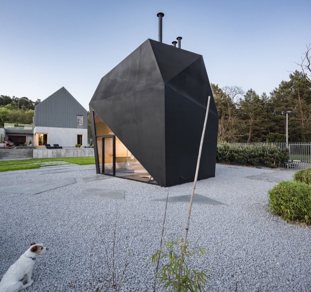 Az eredmény pedig egy origami-ihletésű vendégház lett, ami szoborként is funkcionál.