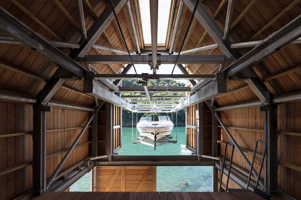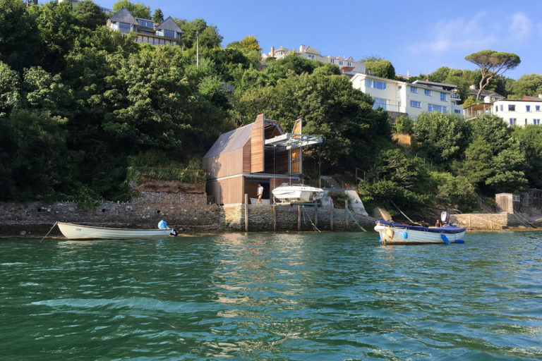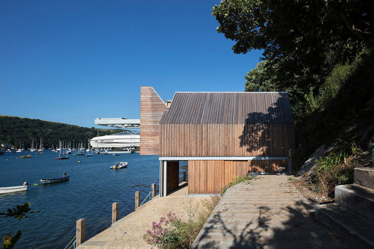 Szibériai vörösfenyőből készült ez az angol csónakház a Yealm partján, amely nemcsak ideális parkolóhely a vízi járművek számára, de egy pazar pihenési, visszavonulási lehetőséget is biztosít a fáradt, vagy a civilizációs nyüzsgéstől eléggé besokallt 21. századi ember számára.