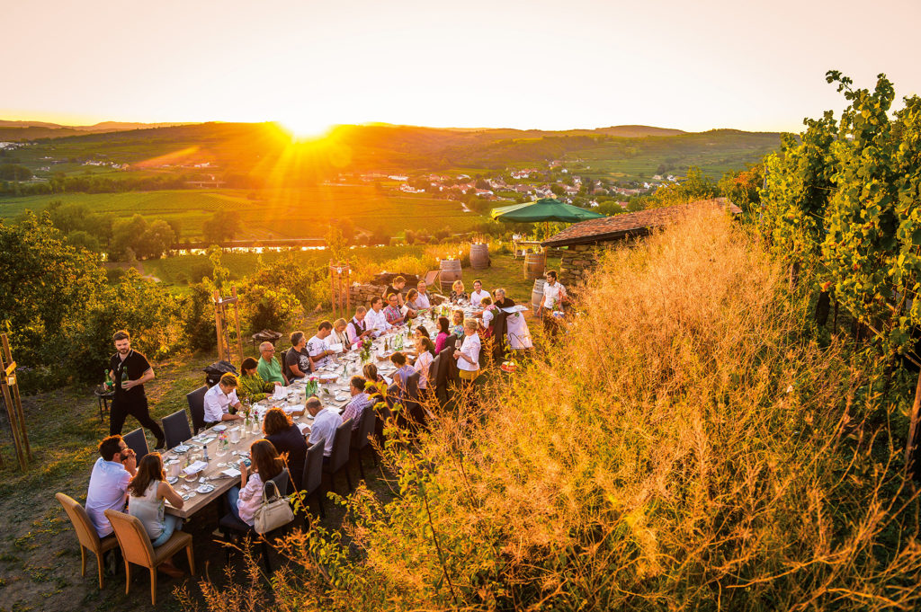 A wagrami Schöller borászcsalád szőlőjében elköltött piknik során felejthetetlen élményekkel gazdagodunk a gyönyörű dunai kilátás és a táj felfedezése révén. A házigazda válogatott finomságokat: szalonnát, sertéssültet, különböző szendvicskrémeket és természetesen bort, ill. szőlőlevet csomagol piknikkosarunkba. A reichersdorfi pincesoron díjnyertes nedűkkel várják a borbarátokat.