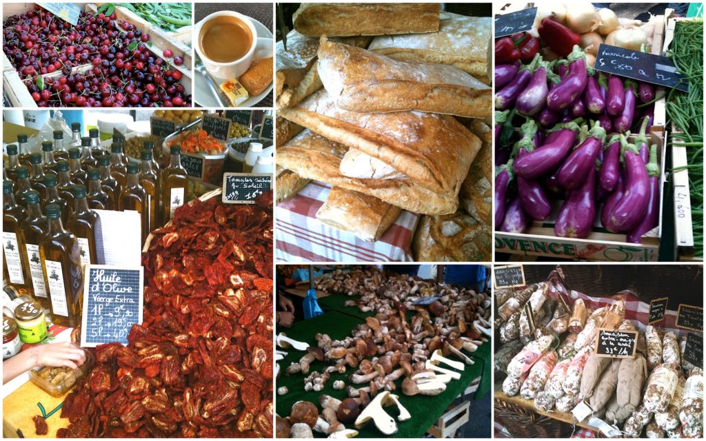 A Cours Mirabeau-n található piac főként ruhákat kínál, de beljebb, kisebb tereken már igazi kistermelők vonulnak fel, ahol fillérekért lehet kiváló kecskesajtokat, húsokat,kenyereket, borokat, halakat, zöldségeket, levendulakészítményeket, és egyéb helyi cuccokat vásárolni. Ez sem látványpékség a turistáknak: tele van kosarakkal vonuló helyi háziasszonyokkal, akik inkább itt vásárolnak be friss dolgokból, mint a teszkóban.