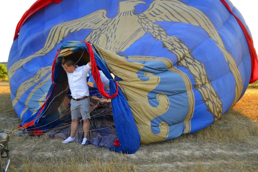 Nem szóltak, hogy kemény lesz a leszállás, de az volt. Egy mezőn értünk földet, a kosár négyet-ötöt huppant, mire megállt, de azt is csak azért, mert a ballon beleakadt valami tövises bokorba, és felborultunk. Persze nem volt veszélyes, csak annyira, mintha a fotelben ülve most eldőlnél, de nagyot dobbant mindenkinek a szíve - kivéve persze a pilótáé, aki mintha így tervezett volna mindent. Nem a kiindulási helyre tértünk vissza, a terepjárók sofőrjei végig követték utunkat, és készültek arra, hogy összeszedjék a földet érő csapatot, ekkor már majdnem sötét volt, mi pedig másra se vágytunk, mint hátradőlni, és visszaindulni a szállodába.