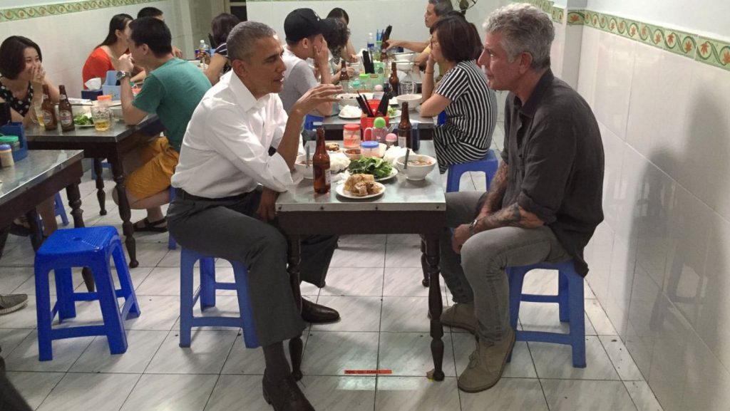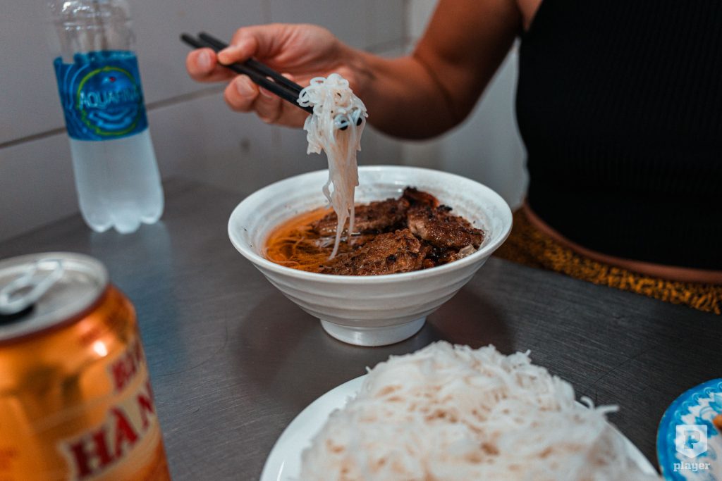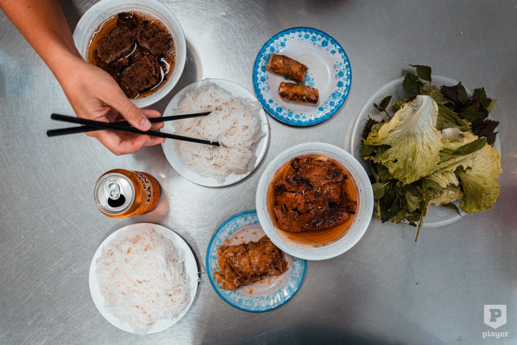 A másik alapkaja a pho mellett a bún chả, ami nem más, mint grillezett disznóhús, rizstészta, nuoc cham (umami bomba szósz), rengeteg zöldség és zöldfűszer egyvelege. Ez egy olyan kaja, hogy elég sokáig el lehetne rajta élni. Egy eléggé felkapott helyen teszteltük elsőnek Hanoi városában: a Bún chả Hương Liên kicsit kiesik az epicentrumból, de megéri felkeresni. Hírét nemcsak a frenetikus ételéről szerezte, hanem arról is, hogy Obama elnök ott kajált Anthony Bourdain néhai séffel.