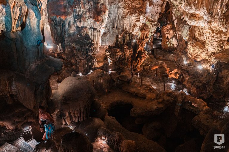 Elvittek egy gyöngytelepre is, ahol vehettünk volna mindenféle ékszereket, de mi inkább élményeket gyűjtünk, ezért sokkal jobban élveztük,hogy elvittek az öbölre jellemző sziklák egyikéhez, amelynek a belseje egy óriási barlang. Tiszta James Bond-fíling volt az egész, mintha valami főgonosz főhadiszállásán jártunk volna. Végre egy hely, ahol elfogadható időjárás volt!