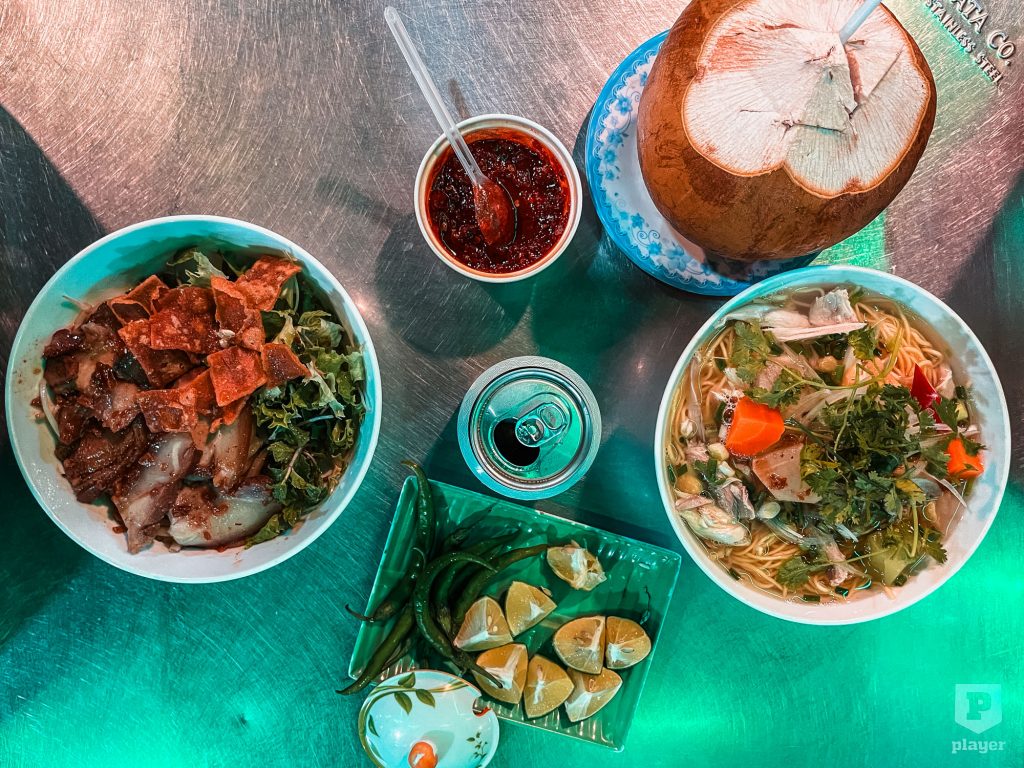 A helyi specialitásnak számító Mi Quang tésztát a sokak által ajánlott My Quang Ba Mua nevű helyen próbáltuk ki, ami a megérkezésünkkor teljesen üres volt. Alaptézis, hogy csak olyan helyre megyünk be, ahol vannak emberek, és lehetőleg helyiek – ezt figyelmen kívül hagytuk. A kaja se volt túl nagy szám, a kiszolgálás még kevésbé, de ezt is kipróbáltuk.