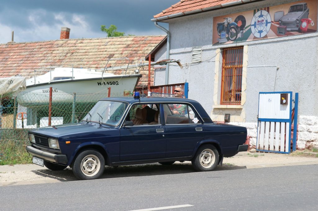 Retro Ernő szolgálati járműve, az elfogóvadász kocka-Lada is hozzátartozik a hangulathoz