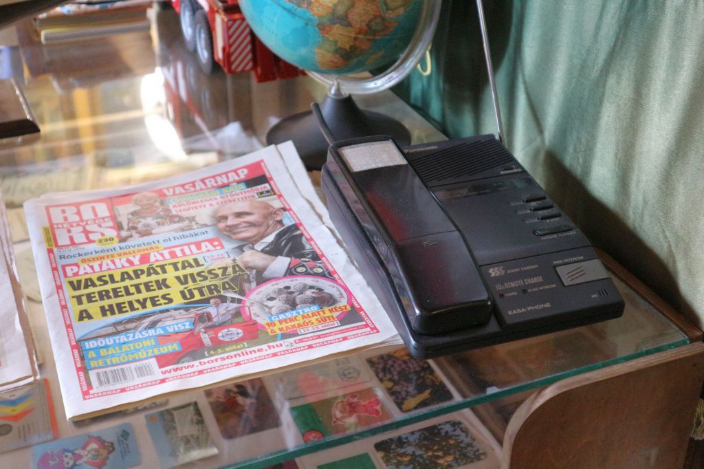 Nézd, a Bors is írt rólunk, mutatja Ernő, de én csak azt látom, hogy pont ilyen brutálmenő üzenetrögzítős telefonunk volt Debrecenben a panelban a hatodikon, csak fehér színben