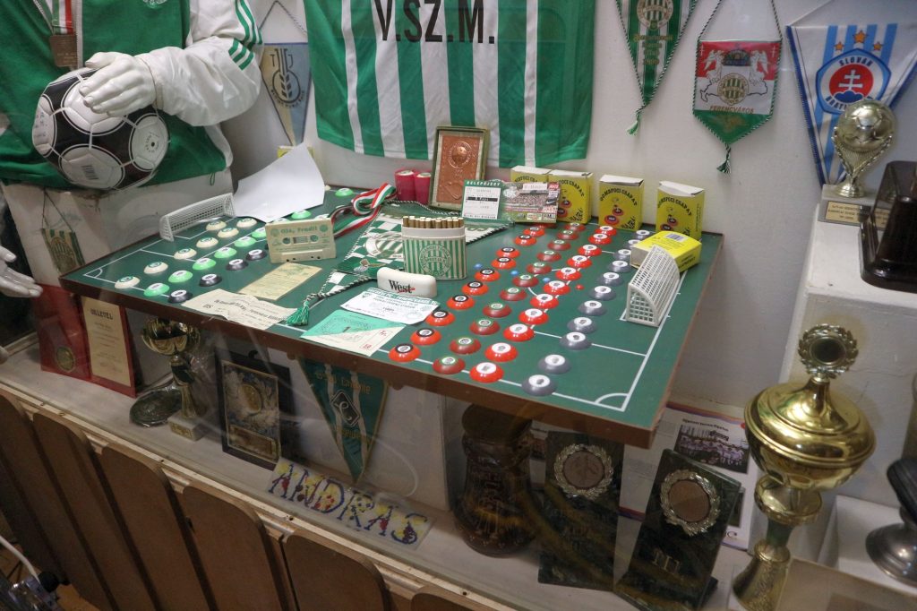 Egy Fradi-rajongó barát adománya a zöld-fehér relikviákkal felturbózott gombfocipálya
