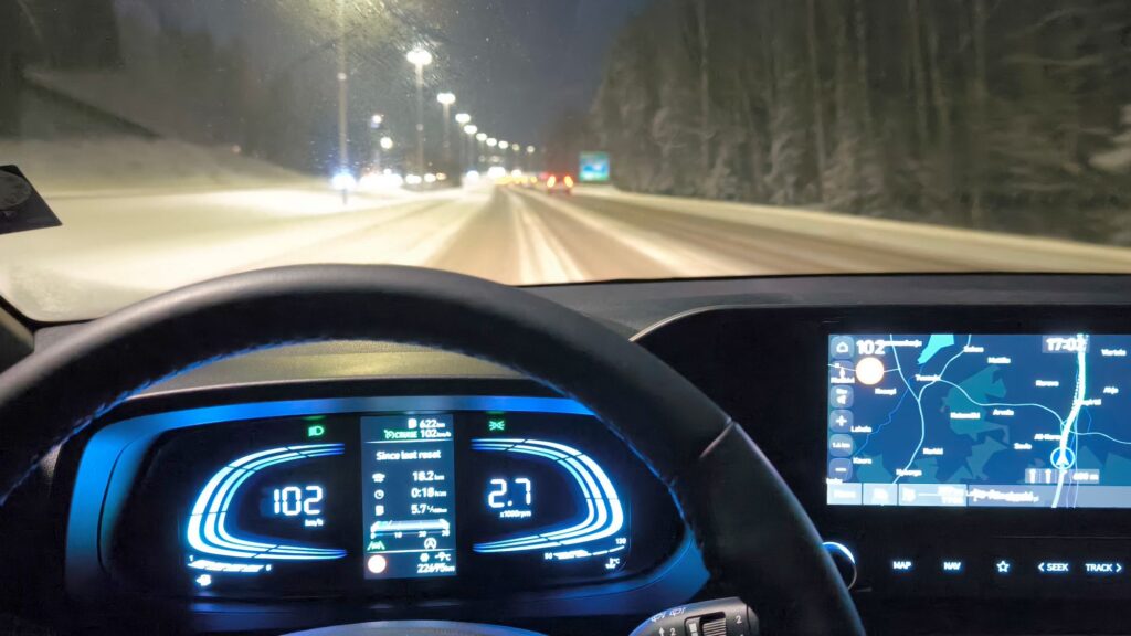 Ezt leszámítva a brutálisan gyors és erőteljes első ülésfűtésekkel, kellemes kormányfűtéssel felszerelt, egyszerű, manuális szabályzású, de hatékony fűtésű kiskocsi zokszó nélkül indult, ment, gyorsult, lassult. Kis köszörüléssel, de -35-ben is beröffent, hamar bemelegedett, keveset evett. A túra egyik legmeglepőbb tanulsága az volt, hogy a legjobb sarkköri autó 2026-ban valószínűleg nem egy V8-as dízel LandCruiser, mint amire eddig gondoltam volna, hanem az effajta kis benzines gyöszök.
