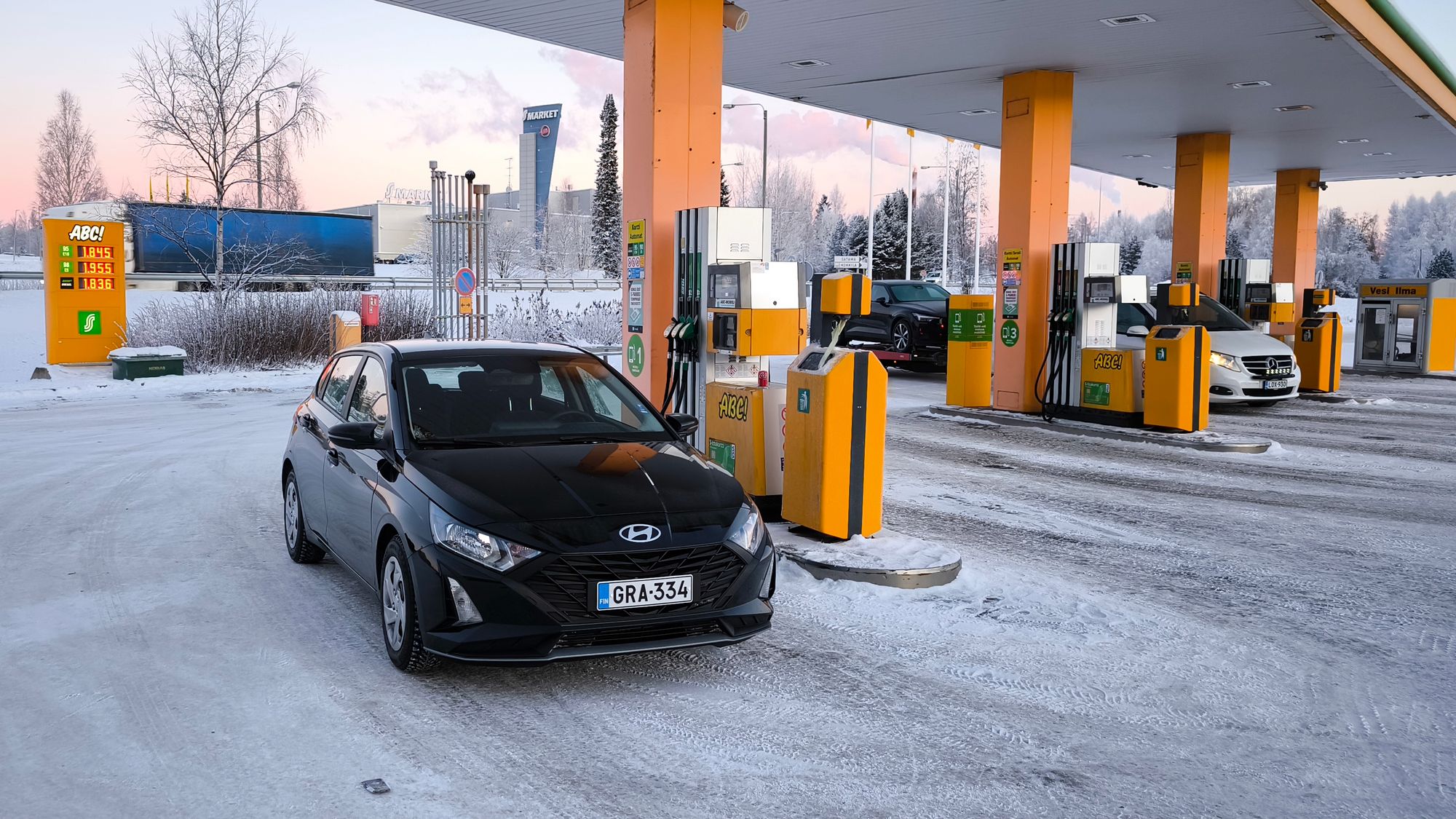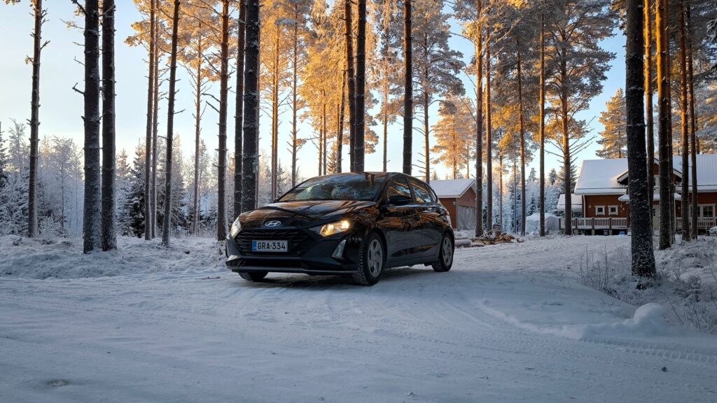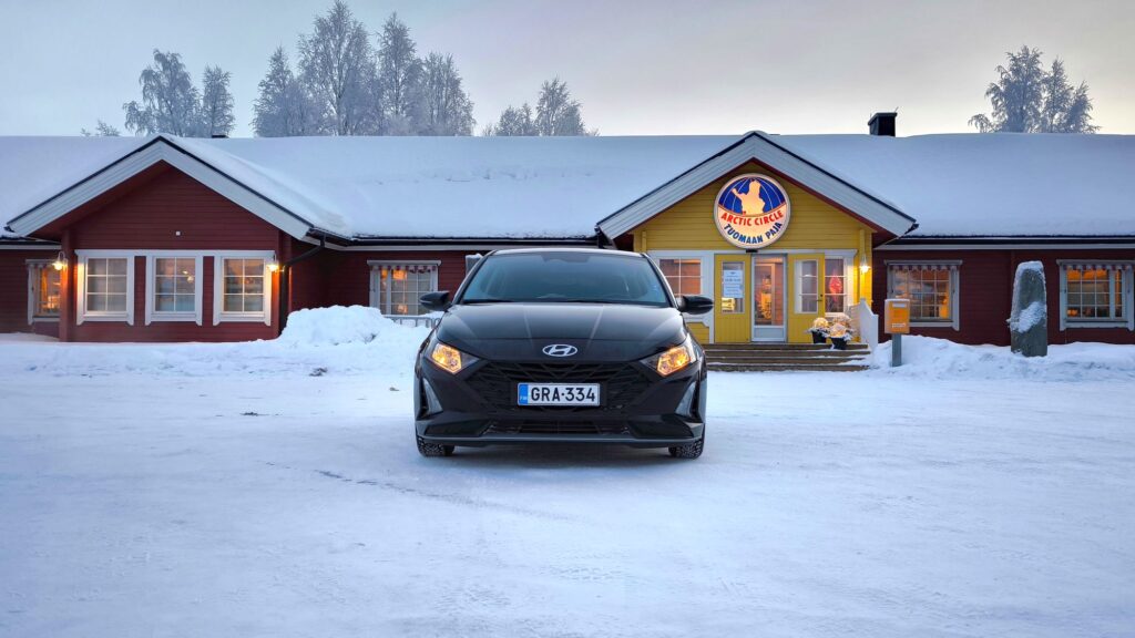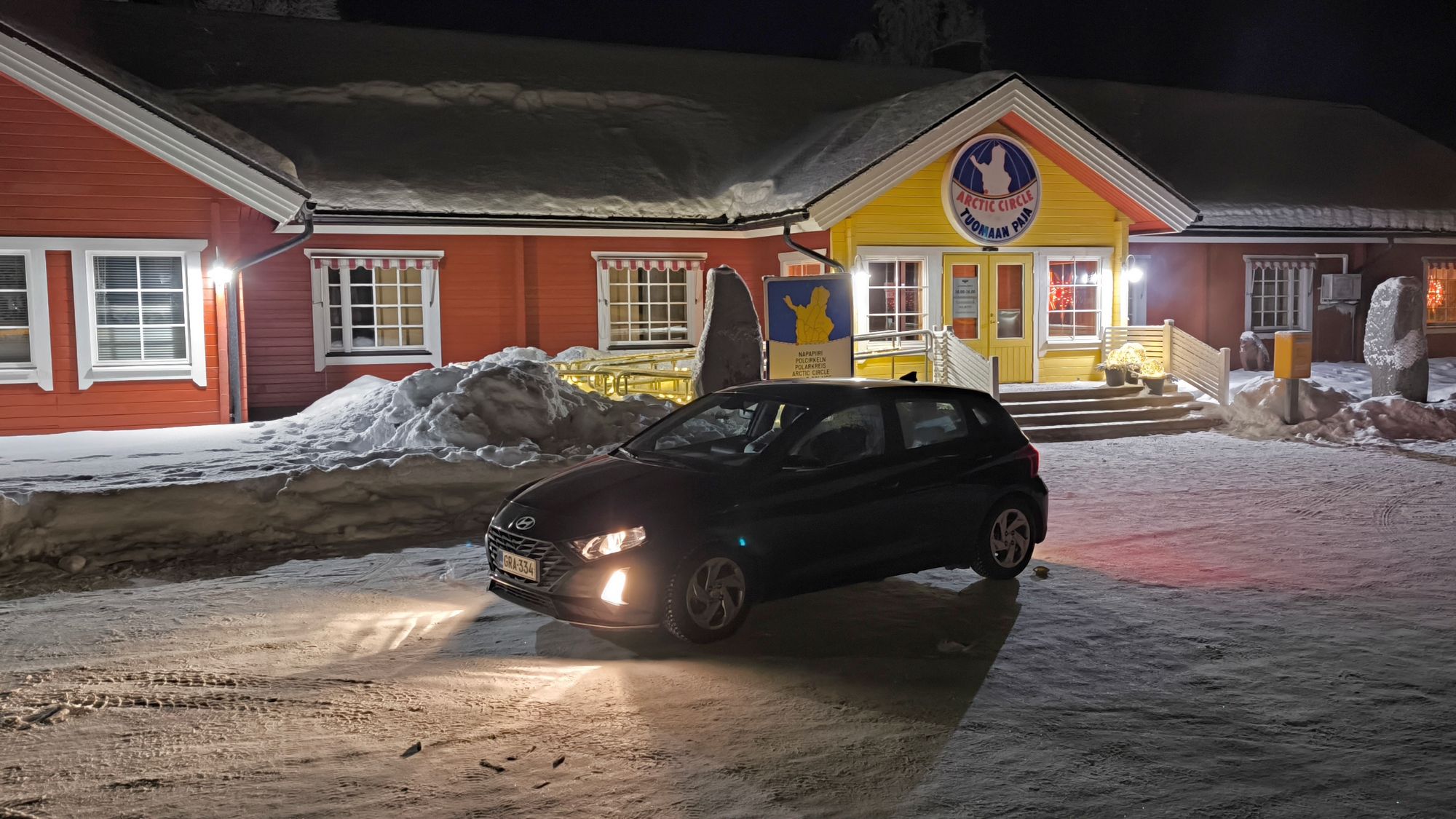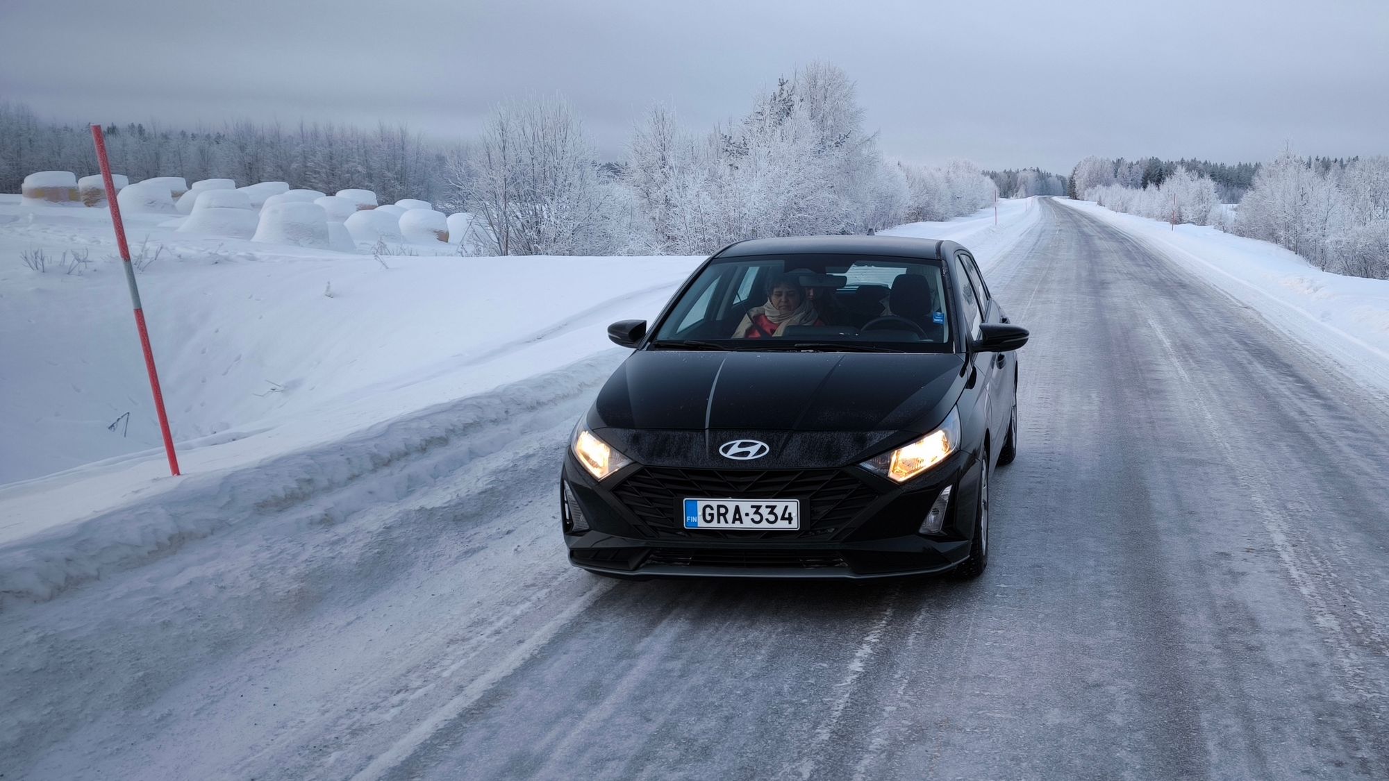 Korábban a sarkkör feletti szállásunk tulajdonosát megkérdeztem egy üzenetben, hogy kibírja-e egy Helsinkiben, -7 fokban bérelt kocsi az ő -37 fokra előjelzett éjszakájukat, de Jari megnyugtatott: nem szokott gond lenni a nagyobb cégek autóival. Kicsit azért gyanakvóan pislogtam a szerény, fekete Hyundai i20-ra: ez a nyomoronc tényleg felvisz minket a rettenetes hidegbe és vissza is jön majd onnan?