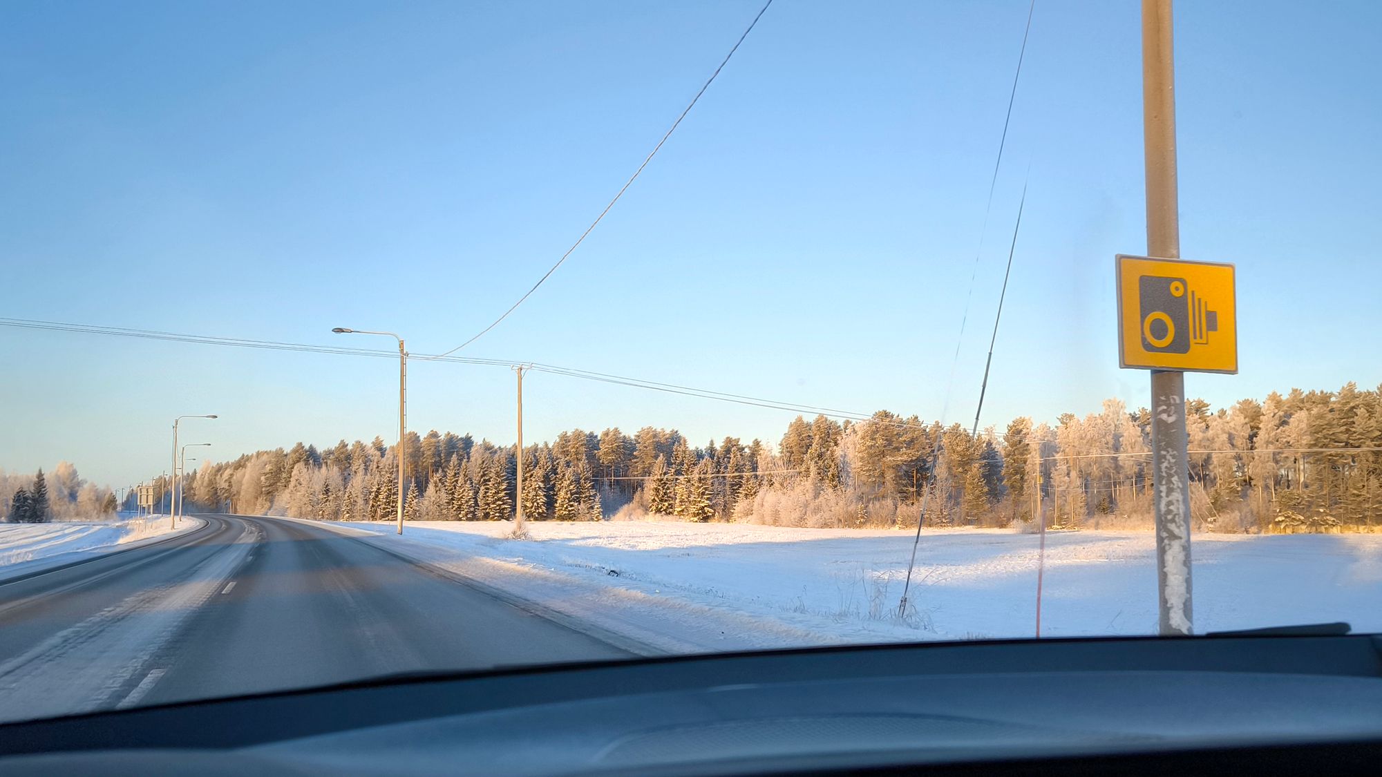 A finn utakon a normál tempó jellemzően az engedélyezett maximum, plusz-mínusz 10 km/h. A helyiek azt mondták, a plusz 10-es tolerancia benne van a sebességellenőrzés rendszerében, ráadásul nagyon úgy tűnt, hogy az út mellett álló hosszú-magas, vagy duci-kocka alakú automata kamerák többsége a finn télben a lefagyott, behavazott optika miatt használhatatlan. De mindegy is, mert ilyenkor az útviszonyok miatt úgyse nagyon akar vagy tud szinte senki sokkal gyorsabban menni.