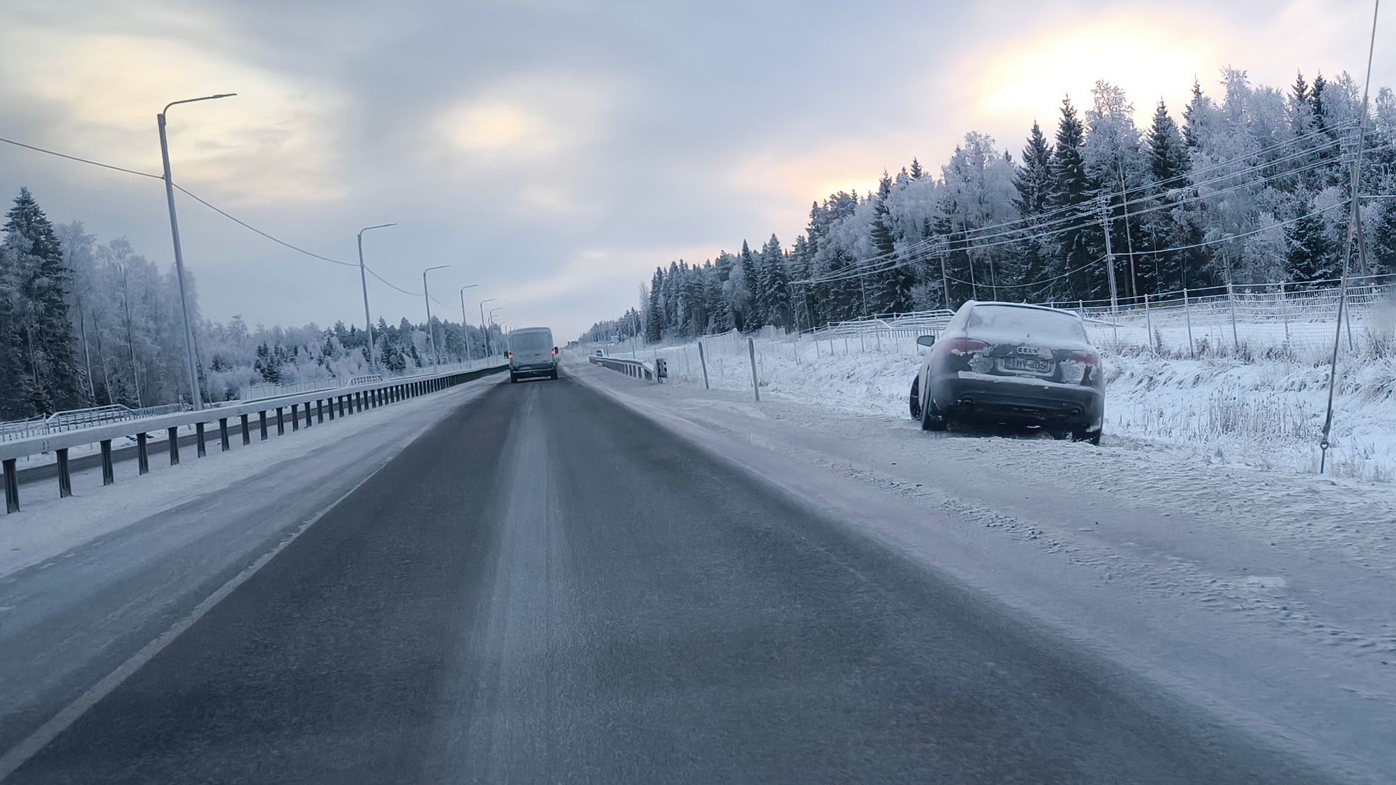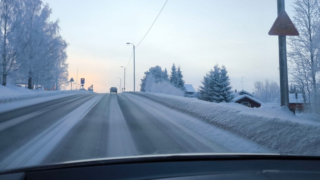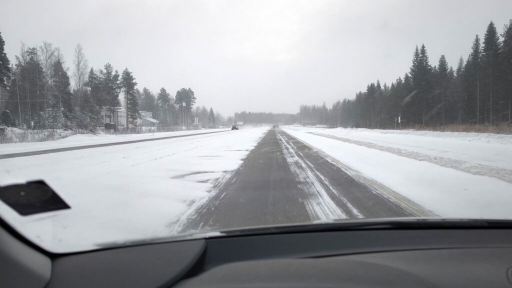 A havas-jeges finn téli úti valóságban a legnagyobb problémát a többi közlekedő jelenti. Ahogy mész felfelé, ahogy csökken a forgalom, úgy válik minden egyre egyszerűbbé. Mire felérsz a világ majdnem-tetejére, már eltűnnek, elhullanak a turisták és a városi finnek: csak az marad az úton, aki tényleg tud vezetni télen.