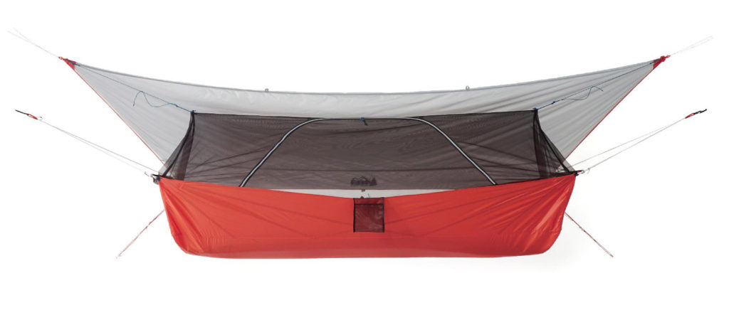 A három évszakos, fára rögzíthető, egyszemélyes alvóhely nagyobb kényelmet és alvóhelyet kínál egy mezei függőágynál, de cipelni mégis könnyű, problémamentes. Nyáron a bogaraktól szúnyogháló védi a turistát, a csapadékos évszakokban pedig vízálló tető is húzható a cucc fölé.