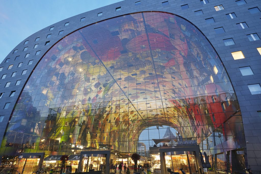 És vannak egészen friss épületek is, ami nem meglepő azok után, hogy olyan világhírű építészirodák központja Rotterdam, mint az OMA vagy az MVRDV: elég megnézni az utóbbi által tervezett piacot (fent) vagy a Depot műtárgyraktár épületét.
