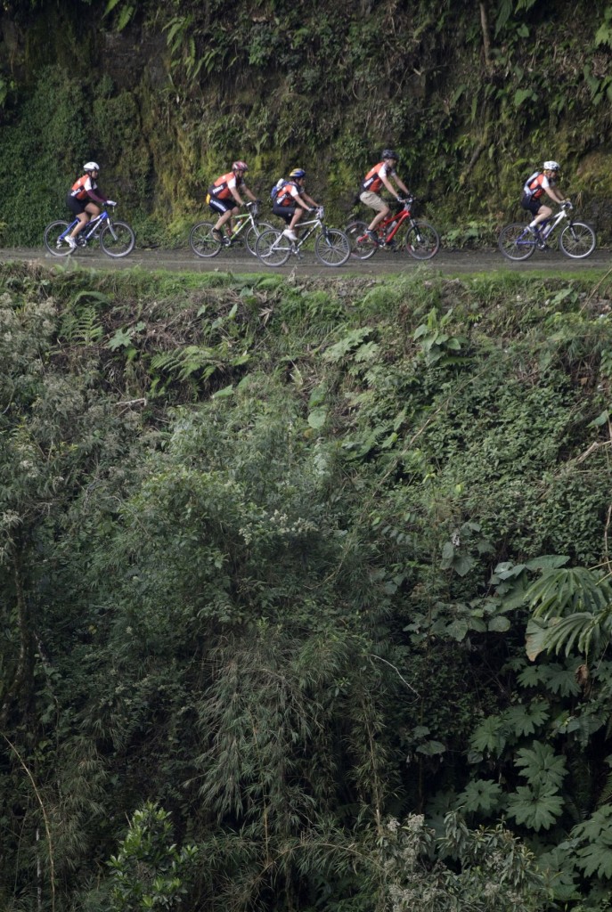 Ezen az állandóan tömött úton a haladást a forgalom mellett földcsuszamlások is nehezítik. Jól látod, korlát nincs.