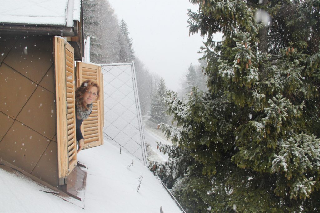 Igazi alpesi hangulatú napozóteraszos körbárban teázhatunk is az ország tetején.