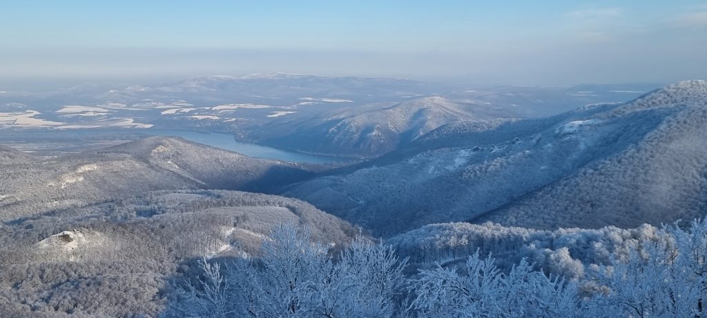 Dobogókő egyebek mellett a Visegrádi-hegység legmagasabb pontja, számos túraútvonal indul innen többek között a Thirring-sziklához, a Rám-szakadékhoz vagy a Zsivány-sziklákhoz, de mivel most télen ezek a túrák túl hosszúak és nem utolsósorban veszélyesek lennének, ezért maradjunk csak az említett menedékház környékén, amely mögül gyönyörű kilátás tárul elénk.