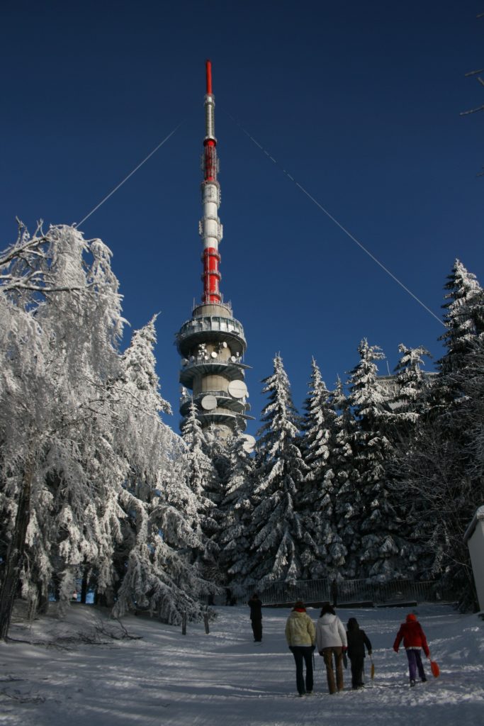 A szálloda mellett találjuk a 178 méter magas TV-tornyot, ami a hetvenes évek végén készült el, de csak jóval később alakították ki a kilátó részét. Alattunk látszik az ország: délre Gyöngyös és az Alföld síkja, nyugatra Galyatető, keletre a Bükk és azon belül a Tar-kő, északra alattunk Parád, télen, jó időjárási viszonyok mellett pedig még a Magas-Tátra is megpillantható.