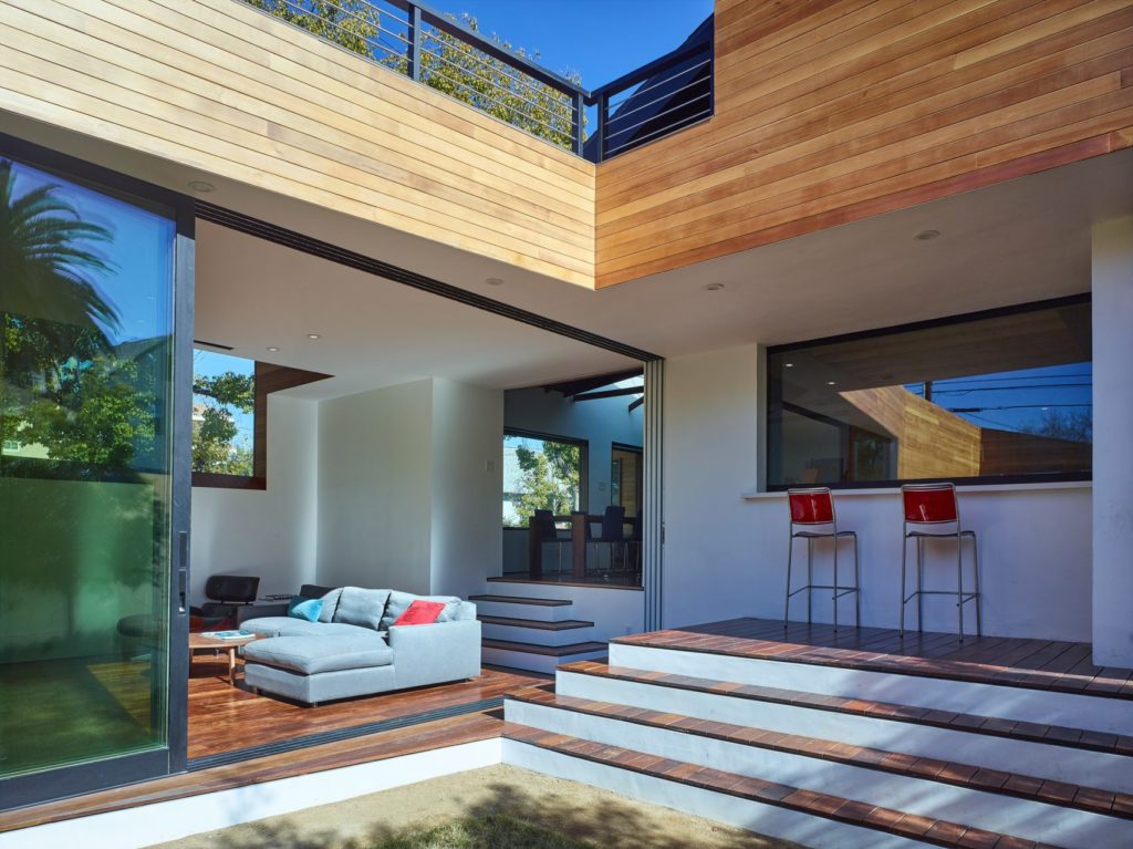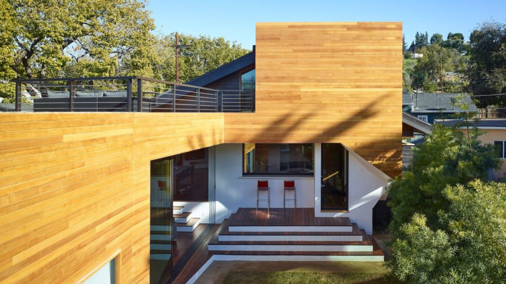 A „gombhoz varrjuk a kabátot” mondás mellett tuti ezt a házat adnánk meg képes példának, ugyanis pontosan ez történt. Egy apró bungalóépületből lett nagy kertes, teraszos, pavilonos, kétemeletes, otthoni irodára berendezkedett luxusrezidencia Los Angelesben - sajnos nem találtunk róla előtte készült fotókat, pedig szívesen megnéznénk, mikor ez egy mezei bungaló volt.