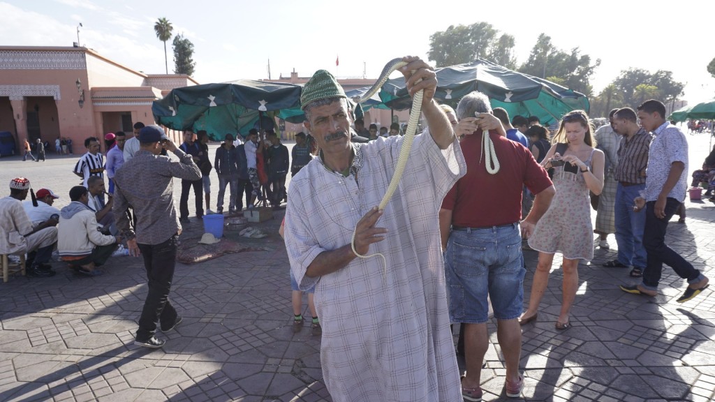 A berber kultúra fellegvárában, ebben a folyamatosan vibráló, kaotikus forgatagban a turista tényleg mindent megkap, amiért Marokkóba utazni szokás. Majmok, kígyók, majomkígyók, a Dzsema el Fnáról folyamatosan szóló dobok és sípok kaotikus melódiája, artisták, narancsárusok és hastáncosok. A tökéletesen levakarhatatlan helyiek becsületére legyen mondva, hogy teljes mértékben kiszolgálják az idelátogató turistákat, akikből – legalább is a helyeik reakciói szerint – összesen három féle van.