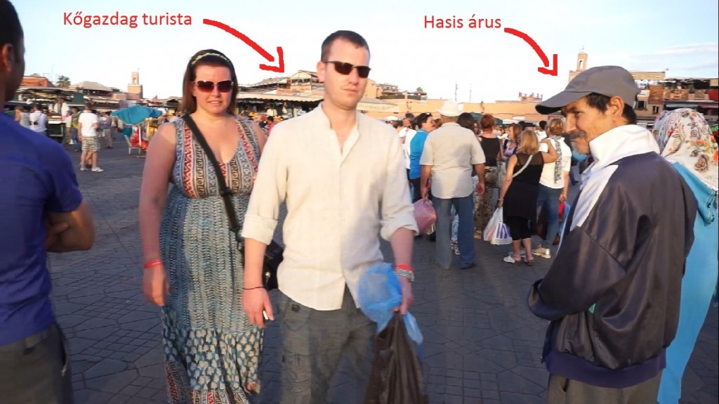 Pro tipp: semmilyen trükkre nincs szükséged. Mivel a hasis árusítása Marokkóban sem legális, így nem akaszkodnak rád úgy, mint a többi árus, a klasszikus továbbsétálós trükkel könnyedén le lehet őket rázni.