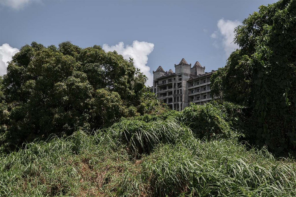 A festői Saipan szigeten az erdőben megbúvó kibelezett épület valaha fényűző hotel volt. Mára csak egy rémisztő szürke folt a zöld rengetegben.