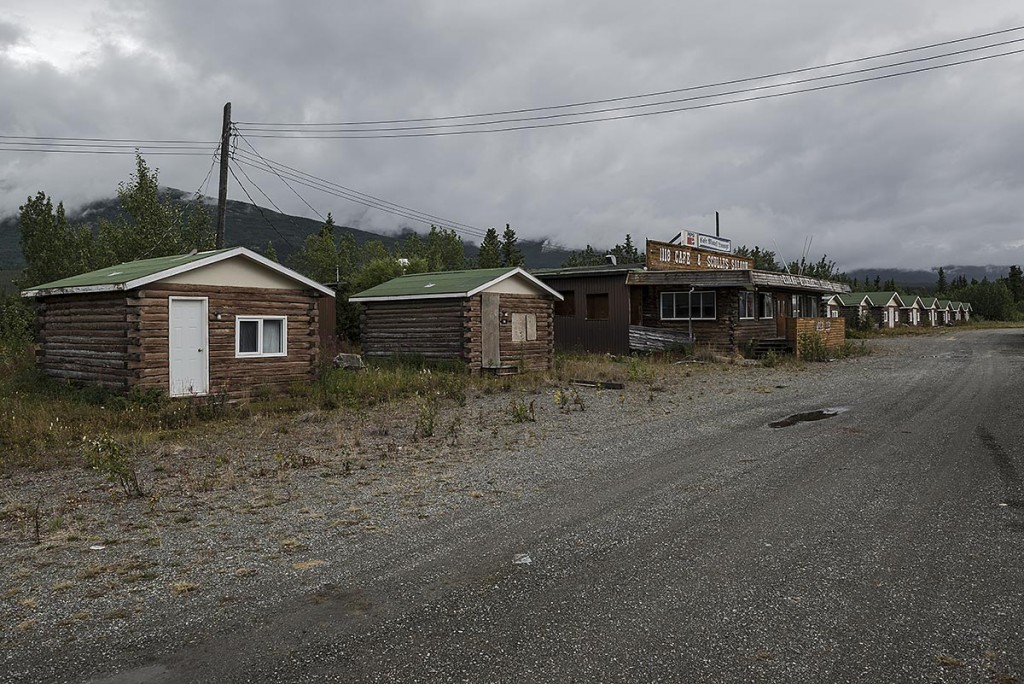 Kanadában, az alaszkai határ mellett álló kiürült apartmanok. Mivel a közelben aszfaltozott út épült, a vendégek egyre elmaradtak. Mára csak egy gazdátlan komplexum.
