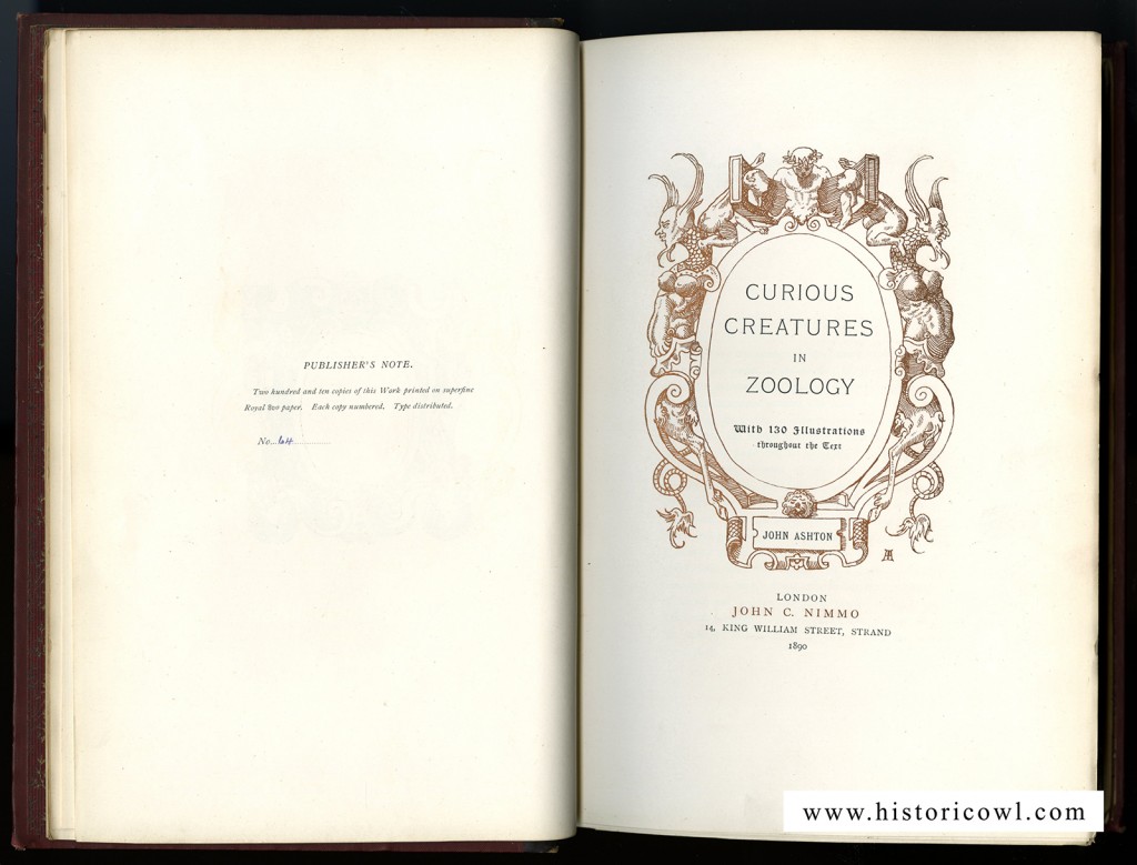 A következő illusztrációk John Ashton 1890-ben kiadott Érdekes teremtmények a zoológiában című albumából valók.