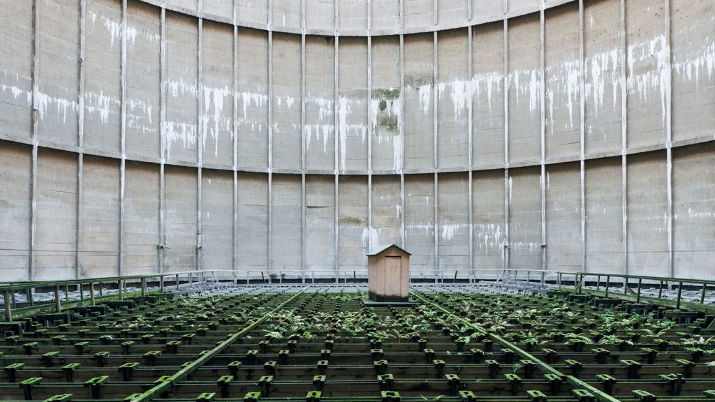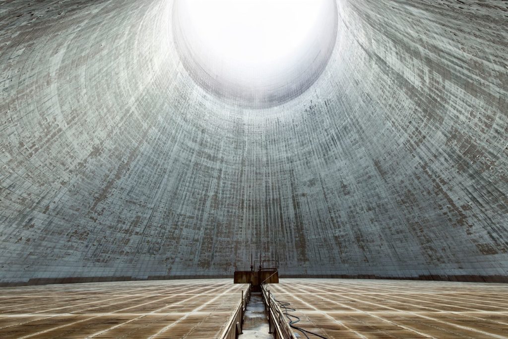 A gigantikus, bontás előtt álló ipari hűtőtornyok 250 méter magasak, közelükbe – hát még bennük – hihetetlen aprónak érzi magát az ember.